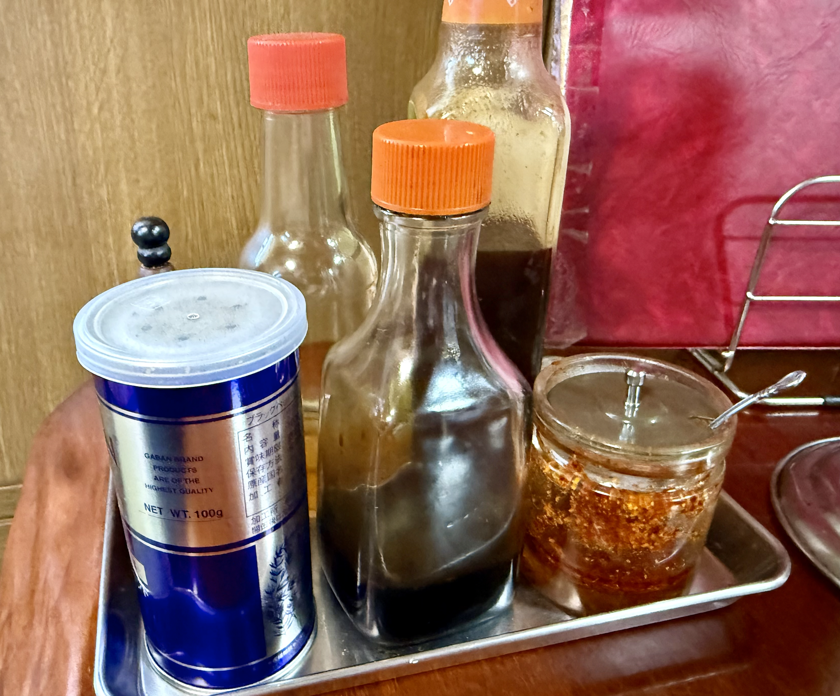 ついでに中華丼も好きなんですが、今日はタンメン一直線。あとそうだ、自家製ラー油を楽しんでみたいので餃子もお願いしましょう。