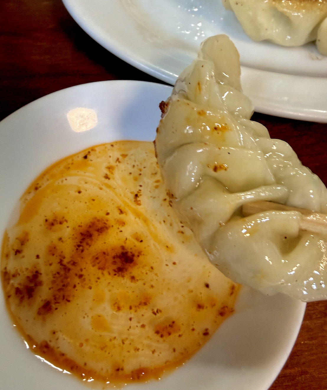 ラー油をフルに楽しむため、醤油抜きの酢とラー油でいただきますか。
