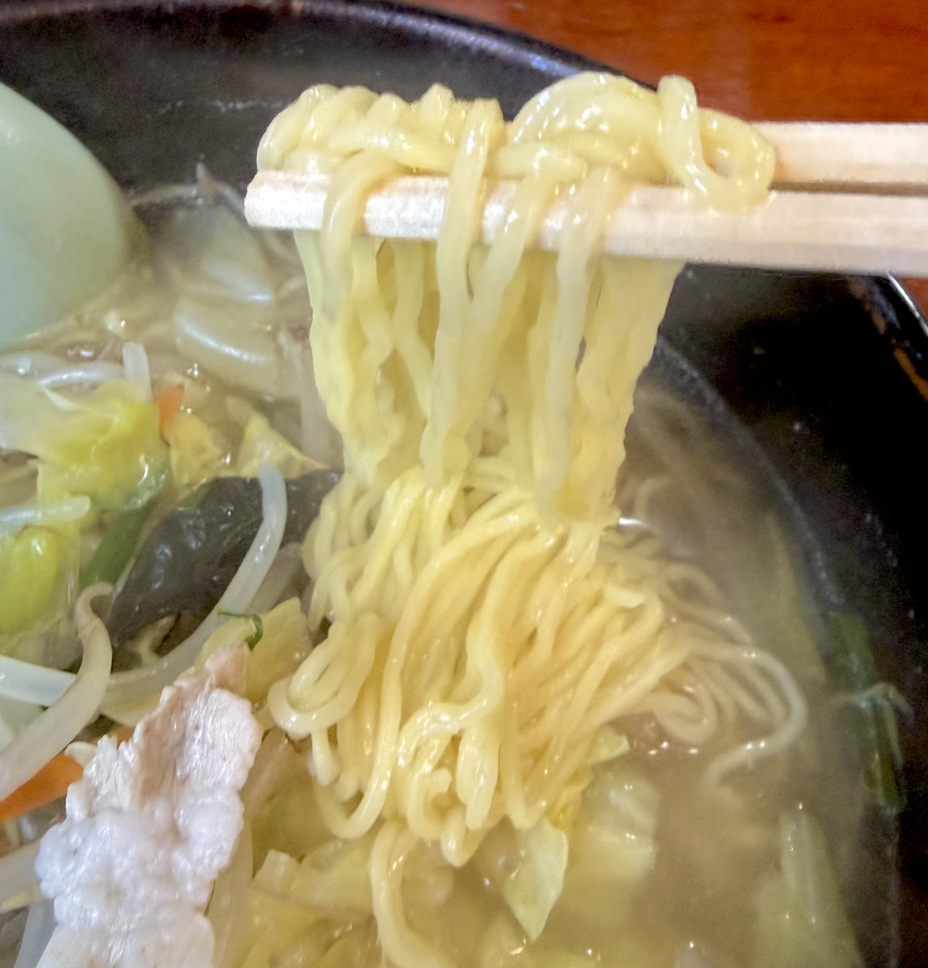 麺は教科書通りのちぢれ中華麺。茹で加減も匠の技です。
