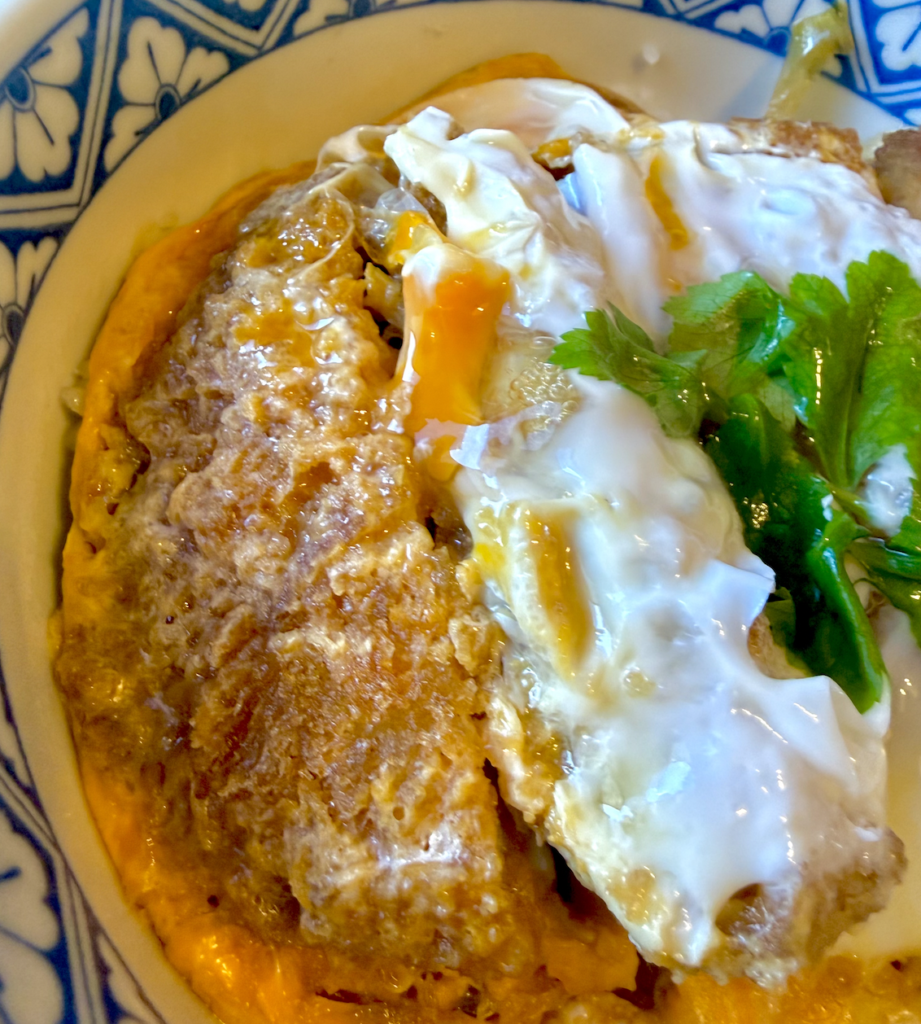 グンマでかつ丼といえばソースかつ丼が主流なんだけど、ぼくはこっちの卵とじ、しかも蕎麦屋さんのかつ丼が好きなのだ。グリーンピースがのった定食屋さんのかつ丼?ああ、そっちだって好きだとも。