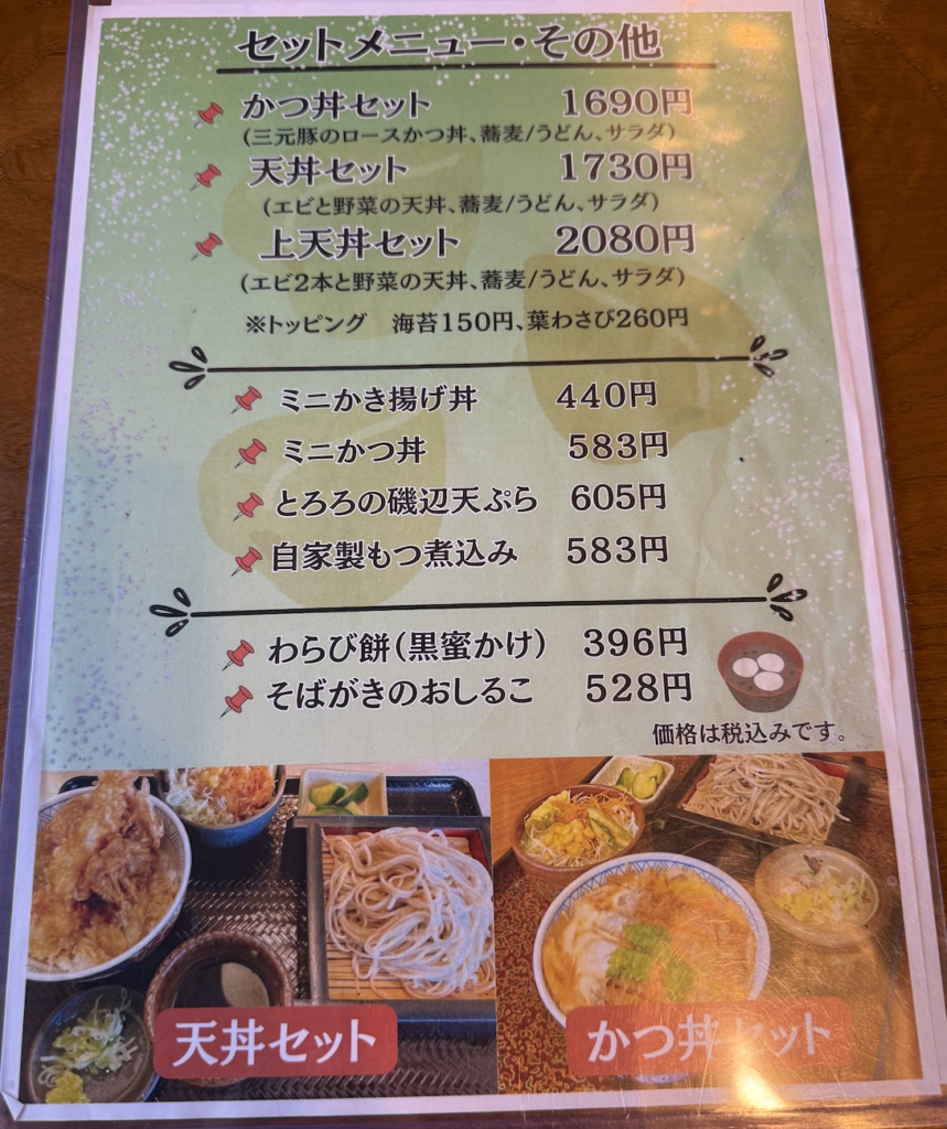 まず目に入ったのはセットメニュー。そうだ、金山庵さんは蕎麦もいいけど、かつ丼が見目麗しく美味しかったのだ。
