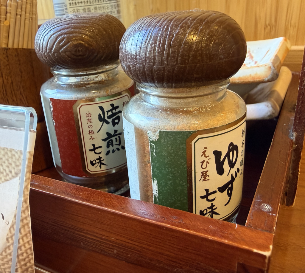 割と甘めな味付けなので七味も使ってみたくなる。