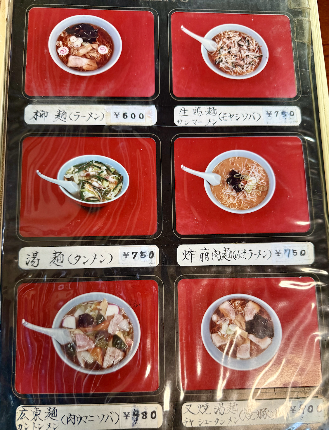 麺メニューはこの辺か。タンメンは‥ああ、あったあった。湯麺と書くとなおうまそうだね。