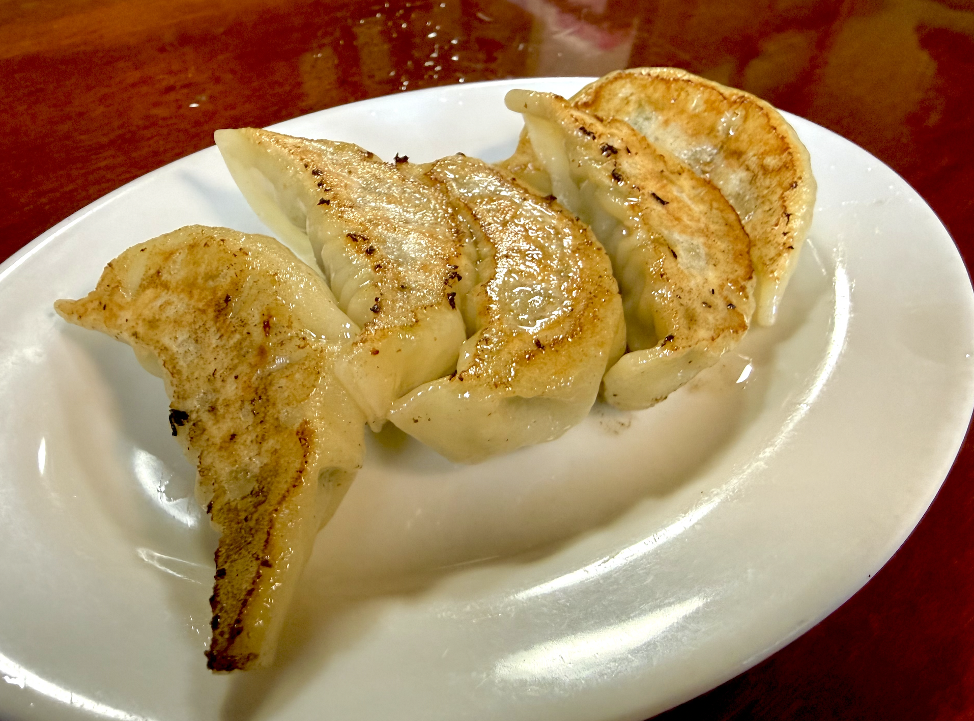 下味控えめ野菜多めの甘味がある餃子。水分を含んだむっちりした皮は好みのタイプだ。大ぶりだけどバクバクいっちゃう。