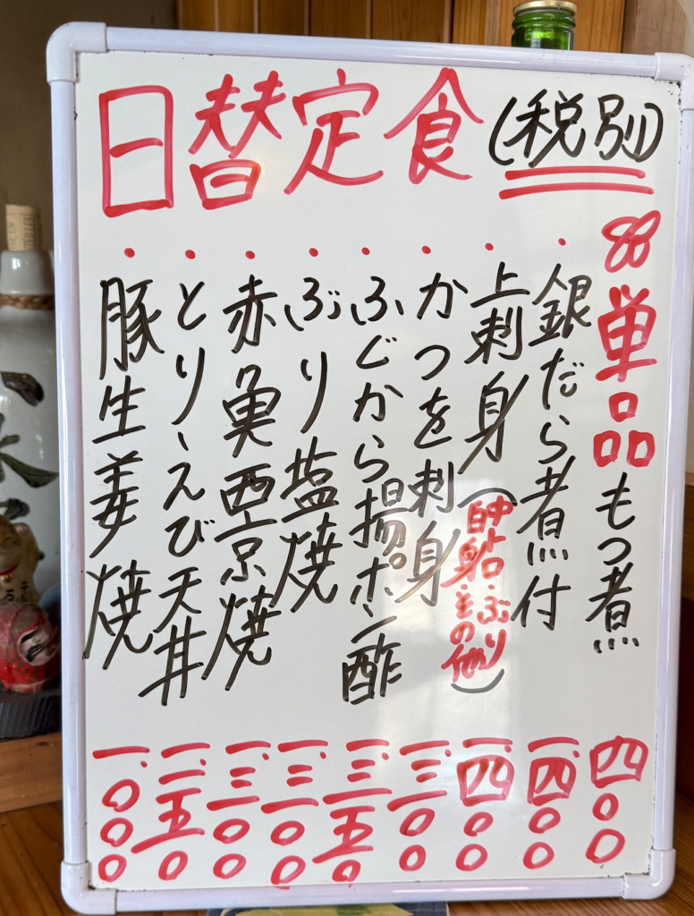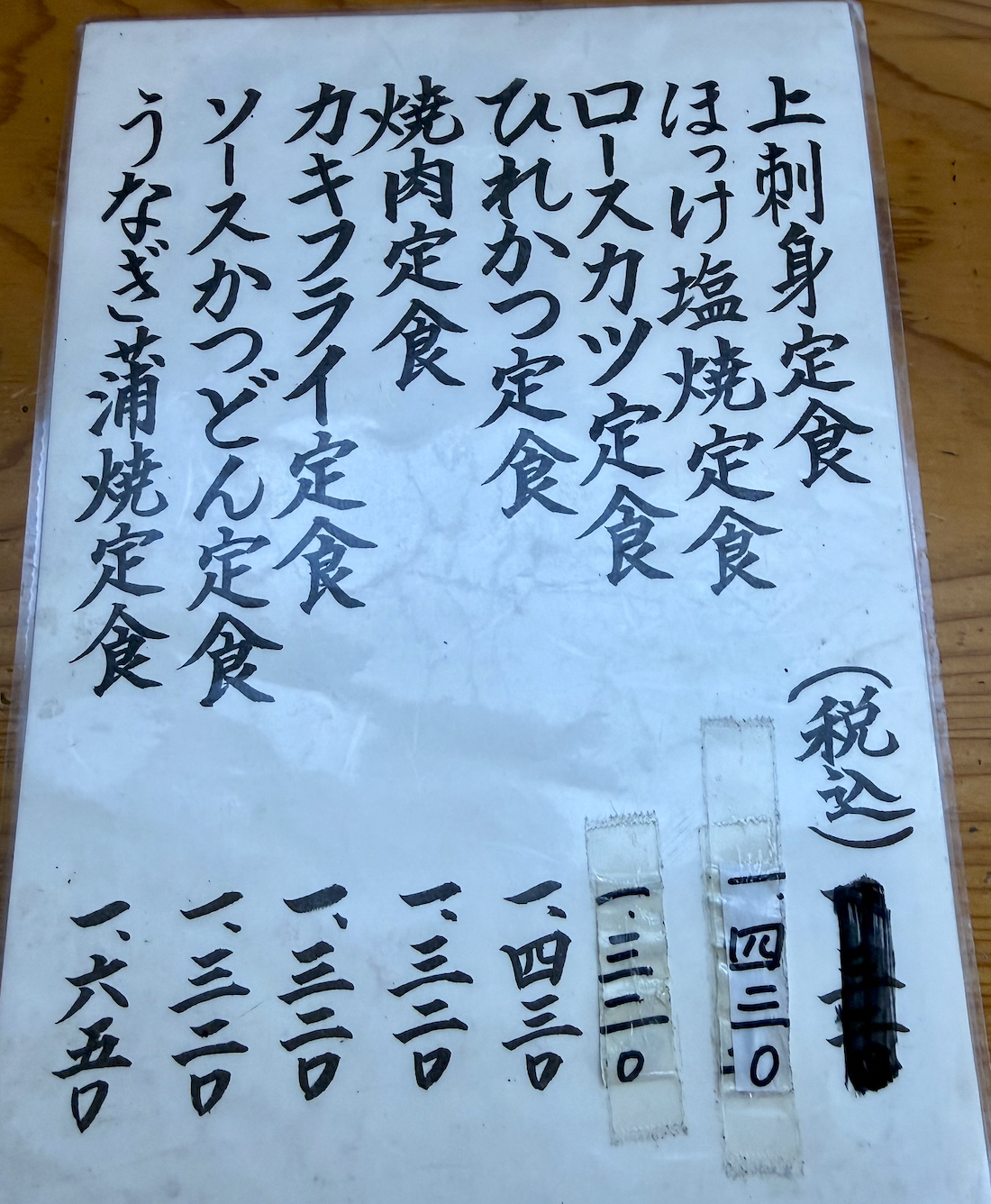 お決まり定食の高級な方を見たら‥バッカモーン、ロースカツ定食なんてあるじゃないか!口が勝手に頼みそうになってしまったがちょっと待て、今日はサカナだって。