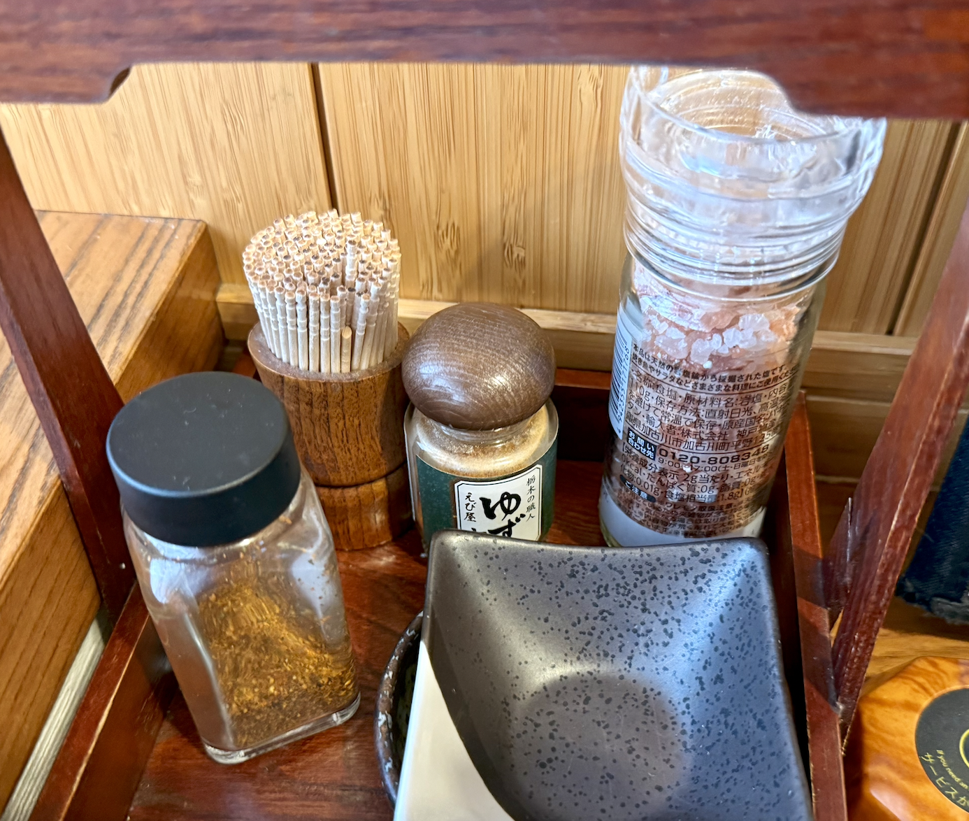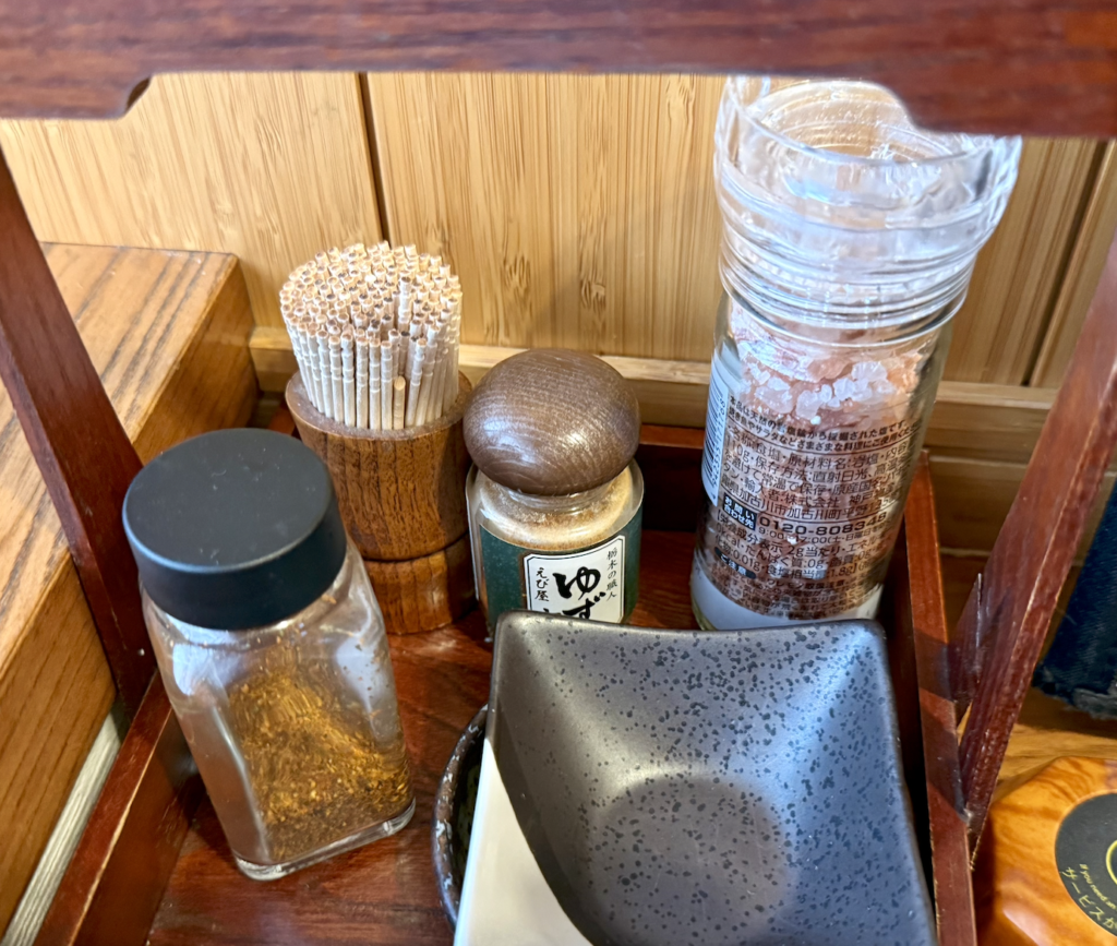 後半戦は七味も使おう。焙煎七味とゆず七味があるけど、鴨汁ならゆずが良かろう。蕎麦にダイレクトパラリの池波正太郎スタイルで。
