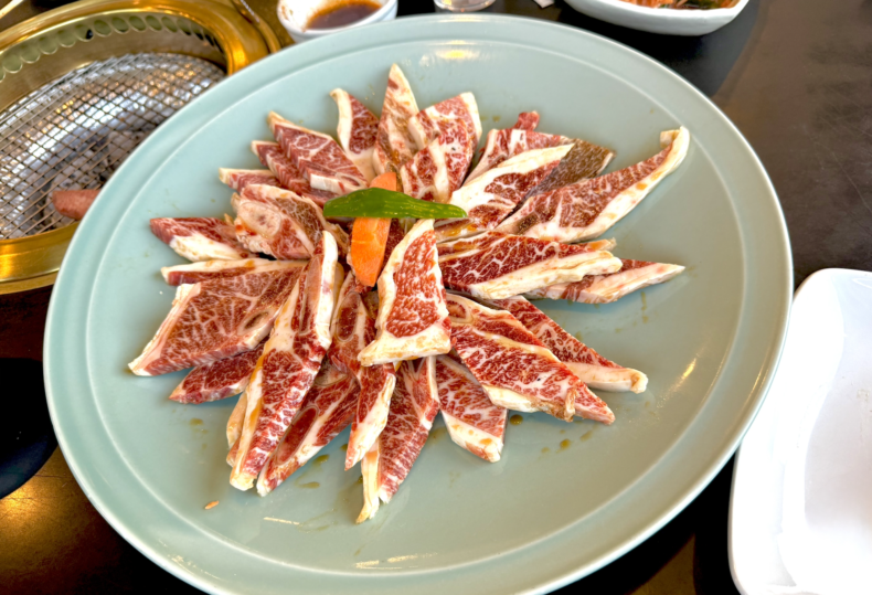 あ、やはりお肉は中までしっかり温かいね。熱が入ったレアだ。その証拠に、この脂の旨味甘味はどうだ。ナマならこんなにとろけるような味の広がりはありませんって。