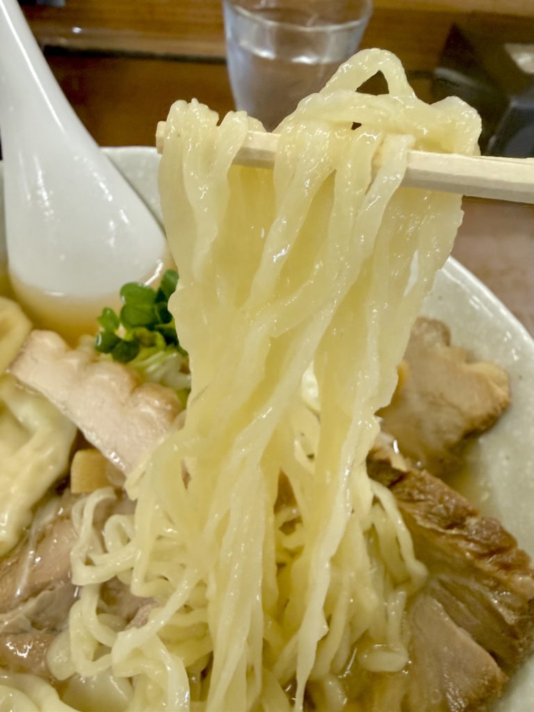 ガラに香味野菜にちょい乾物系の香り。いや〜、懐かしい雰囲気にちょっと高級感もある良いスープですよ。この味を待ち望んでいたのだ。