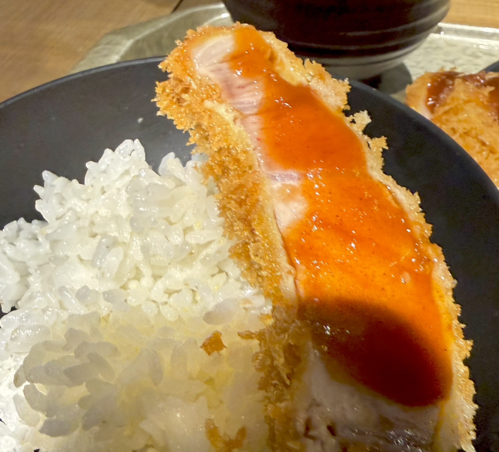 酸味がしっかりしたトキハソースがまたね、脂たっぷりの所を爽やかに食べさせてくれるのよ。この1ピースだけでメシが消し飛ぶ!んあ〜、ご飯中盛り以上が必須であったか。