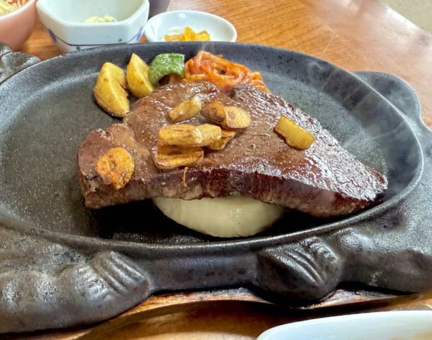 じゅじゅ〜と鉄板サウンドが鳴り響き、ヒレステーキの登場!