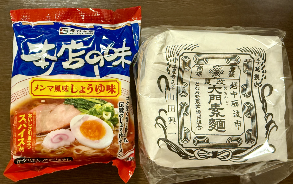途中で除いたスーパーで大門素麺や寿がきや「本店の味」なんかも買ったりしてね。