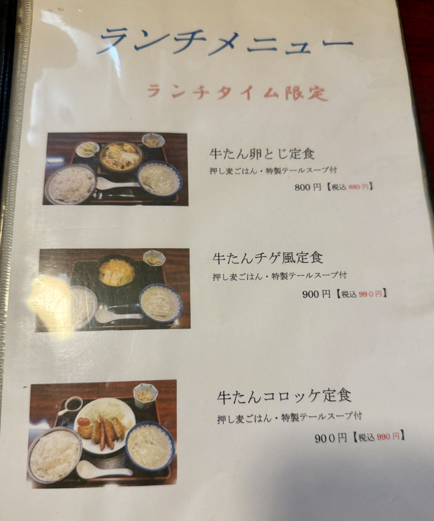 ランチはいずれも牛たんを使いながらアンダー千円と魅力的な価格。でもせっかくだから、変化球でなくズバリと直球の牛たん定食を食べたいな。
