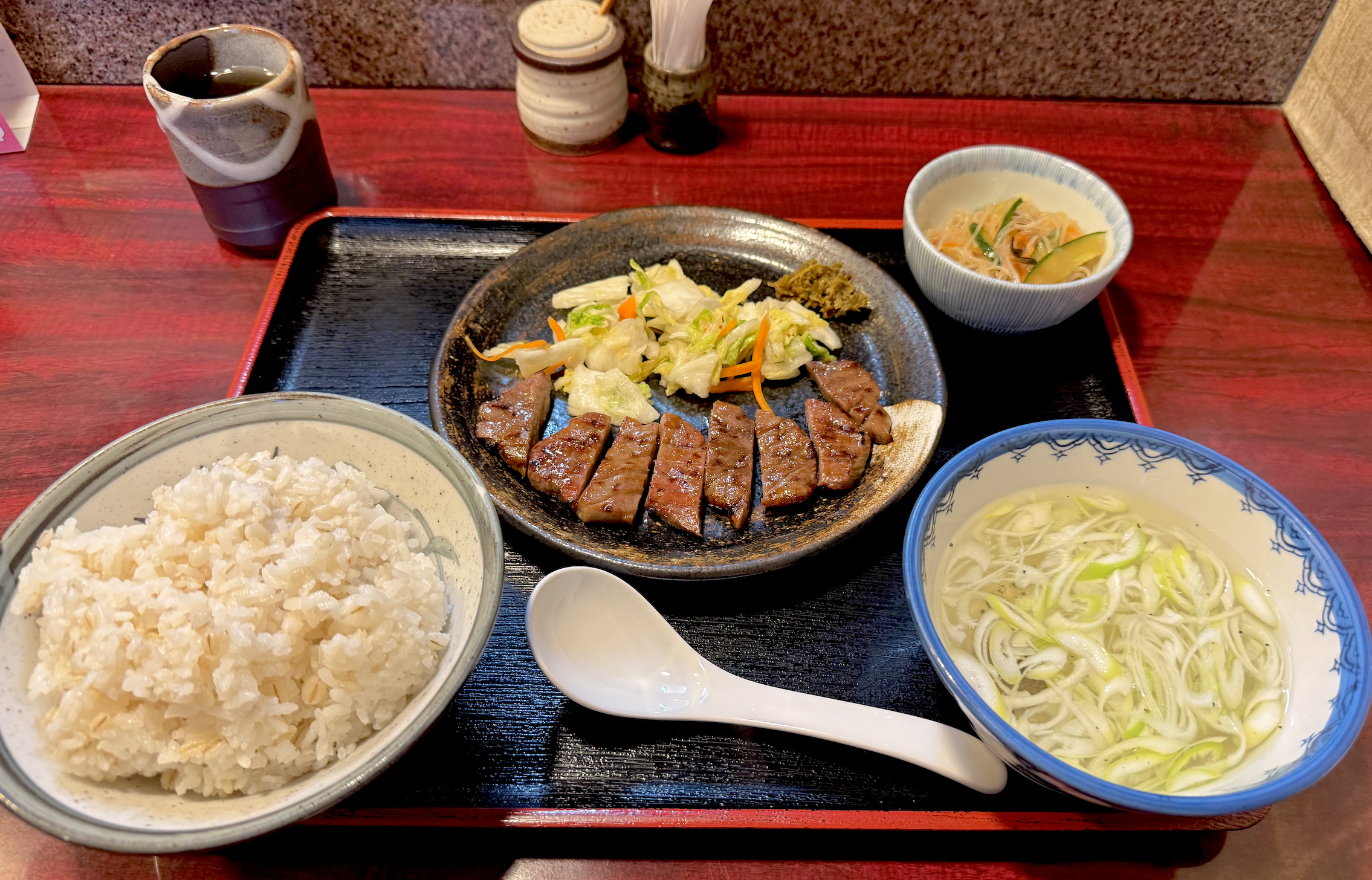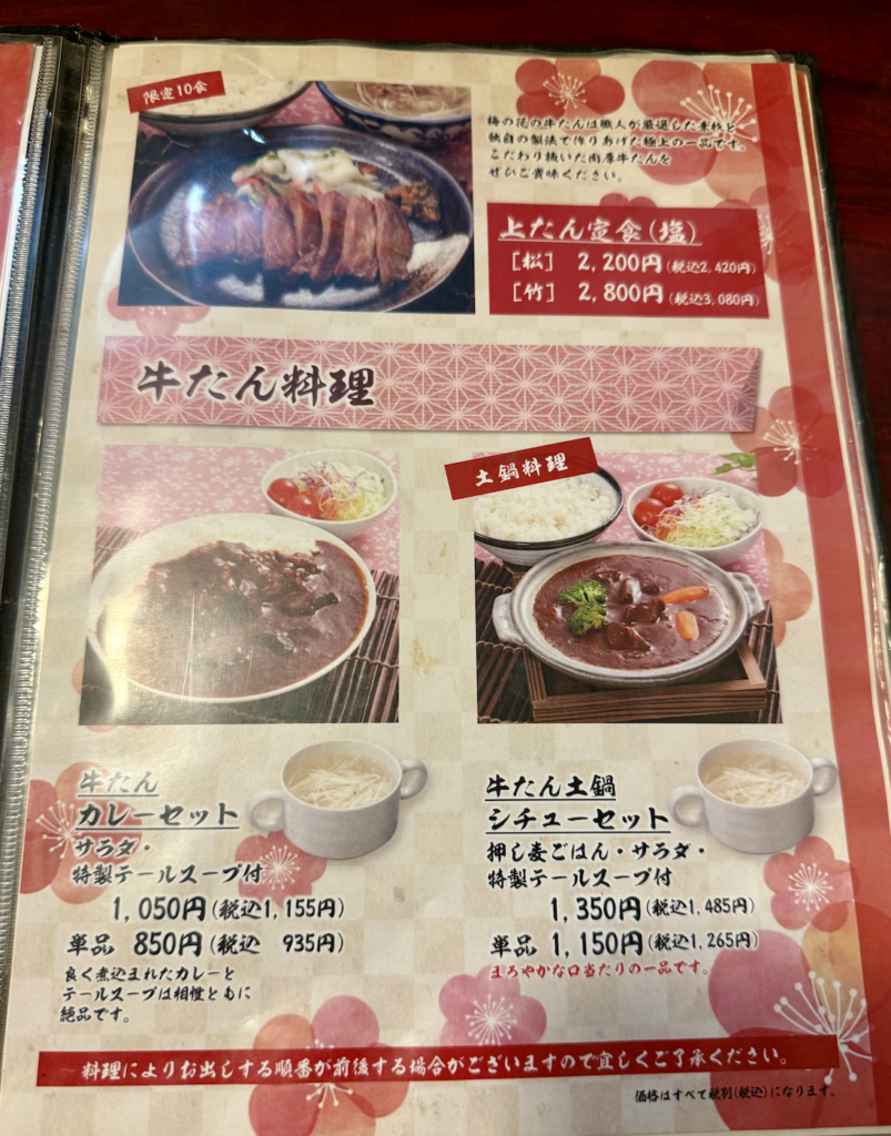 限定10食の上たん定食もあった。こちらは塩味のみ、松竹までで梅が無い。牛たん土鍋シチューに軽く後ろ髪をひかれつつ、上たん定食の竹を願いま〜す。
