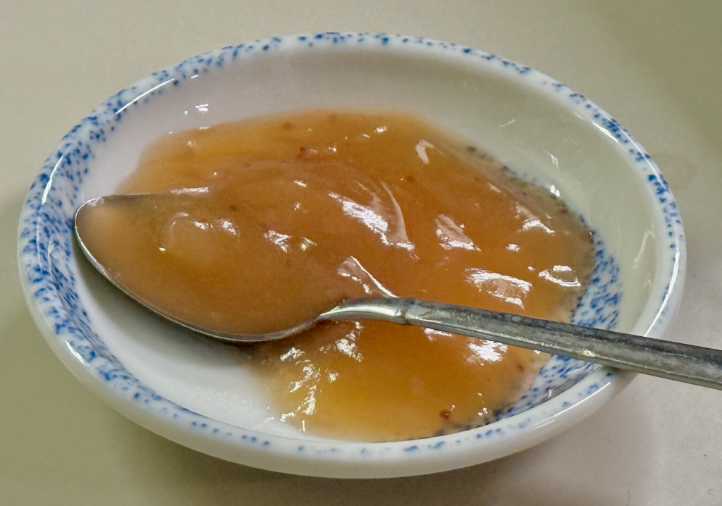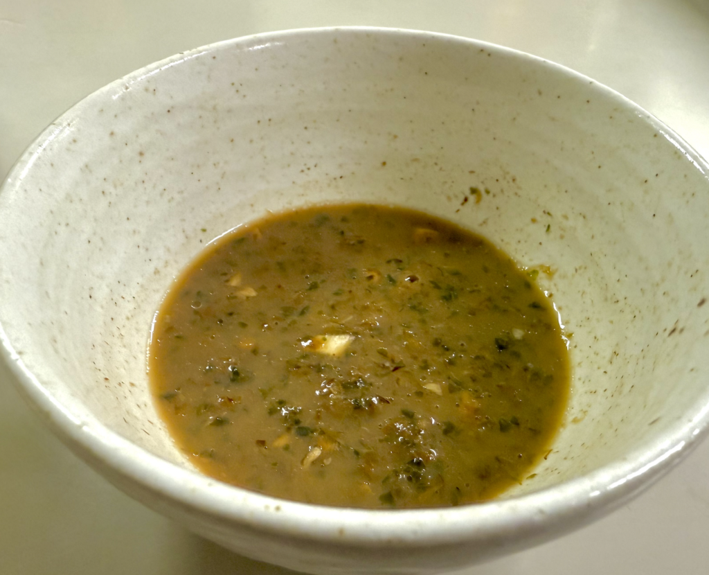 湯豆腐を黄金の味にする賢者の石、プロレス界伝統の味・湯豆腐のタレ。見た目はなんだか味噌のような謎のペーストですが、鰹節や青のりがたっぷり入った濃い醤油味。