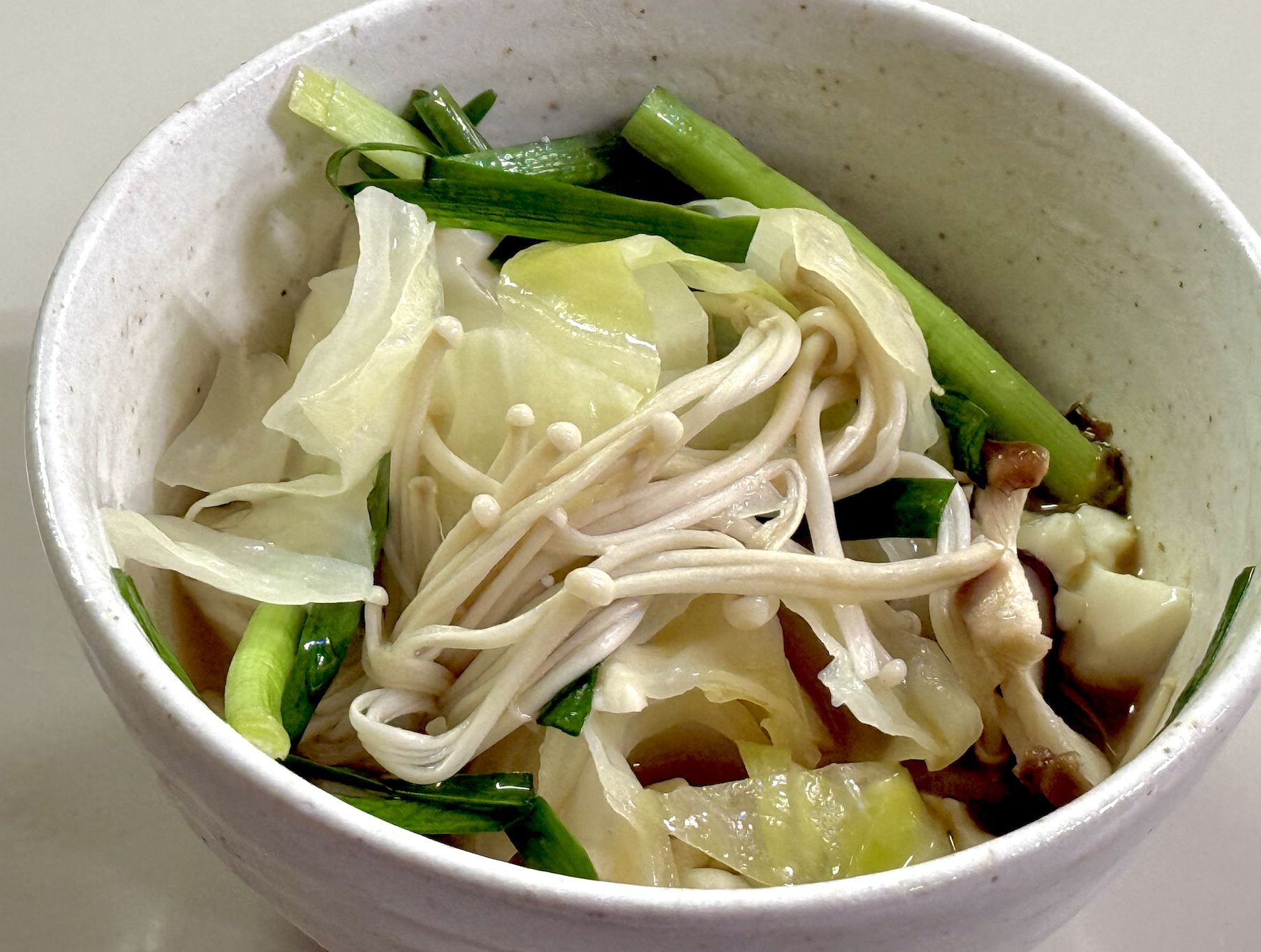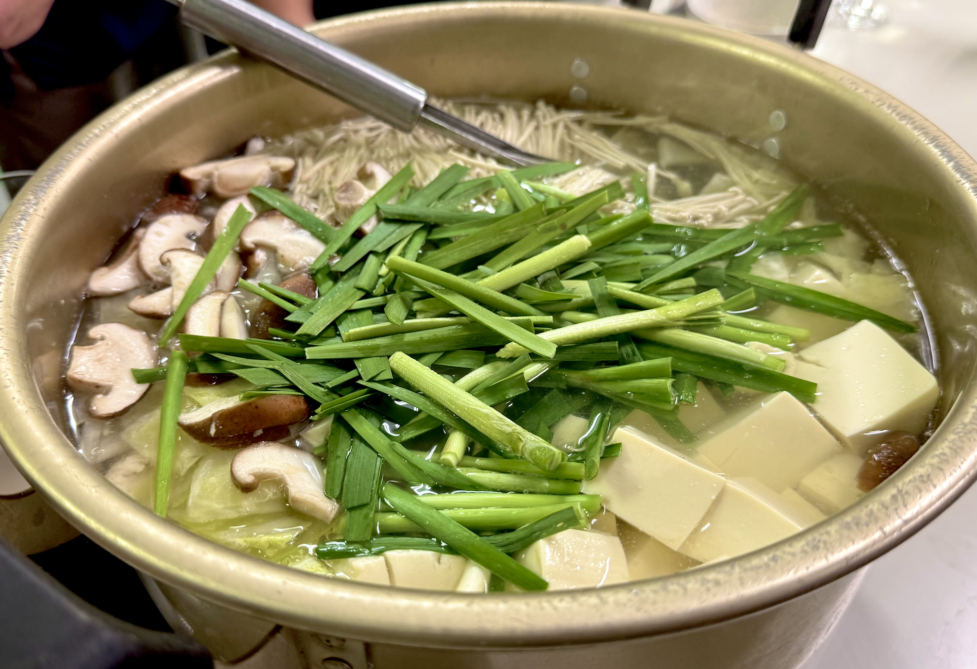 一杯目は野菜やキノコがたっぷり入ったぞ!湯豆腐というより水炊きや寄せ鍋みたいな雰囲気だ。そりゃそうだ、「ちゃんこ」だもんな。