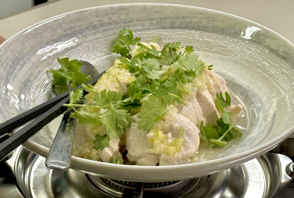 次はおなじみとなってきた蒸し鶏ネギソース。