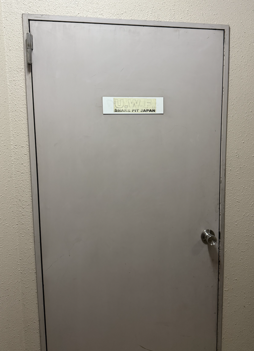 そんなわけでドアもお店らしさゼロ、ただの鉄のドア。しかしプレートに輝く「U.W.F.」の文字がプロレス界の聖地であることを示しています。
