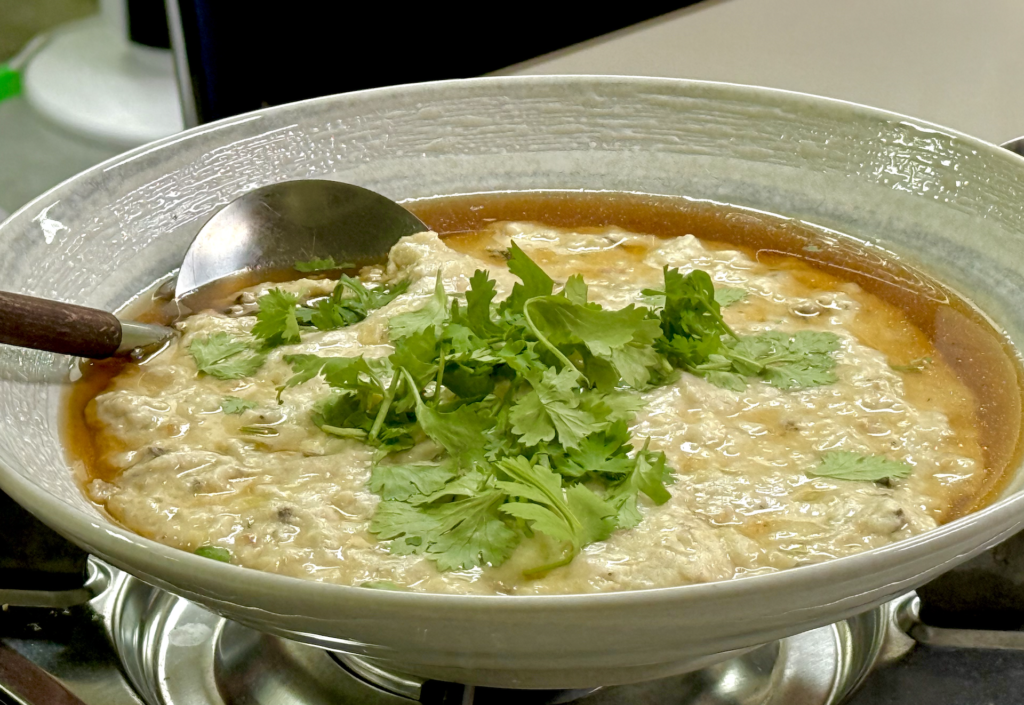 豆腐ハンバーグのような味と食感ですが、具材が海老や椎茸なので茶碗蒸しの雰囲気もあり、いかにもご飯に合う醤油スープが‥ああ〜、どんぶりメシにザブザブかけて食いてえ〜!喰らわせて〜!