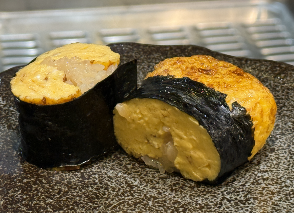 そして焼きたて玉子焼き。大将の名刺がわりとばかりにウデマエを見せつけてくれます。