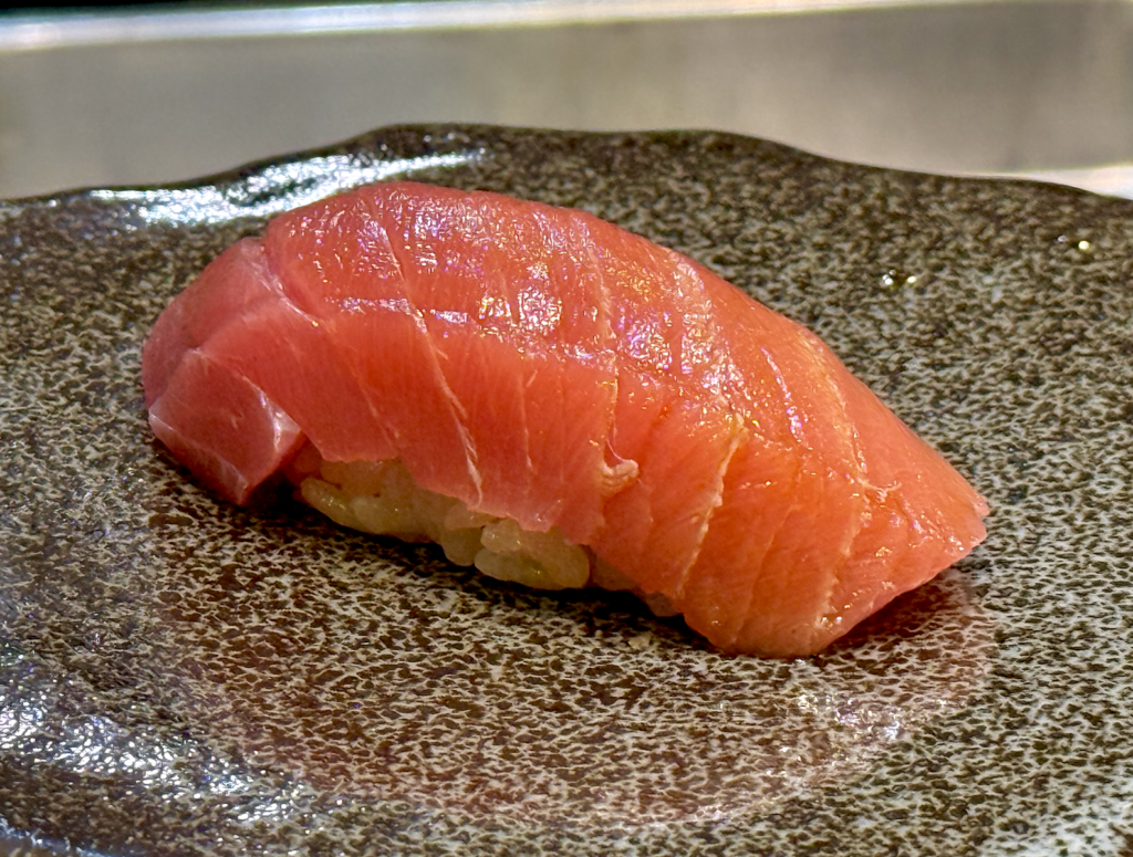 ひ乃さんのマグロは、1万円未満のコースとしてはあり得ないほどの上物。優しい赤酢のご飯と香り高きホンマグロ。うめえなあ。