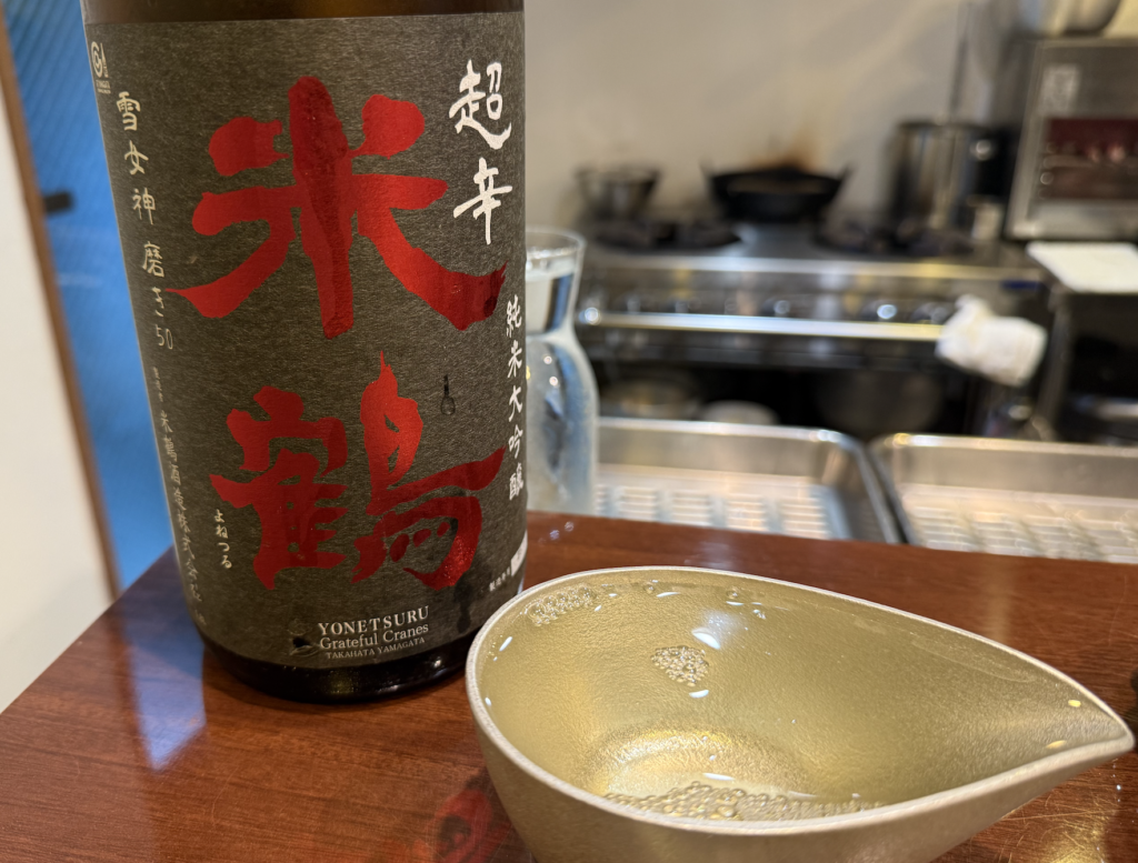 米鶴 超辛 純米大吟醸。スカッと軽快で、白身の刺身やお寿司に良さそう〜。お寿司屋さん専用機だ。