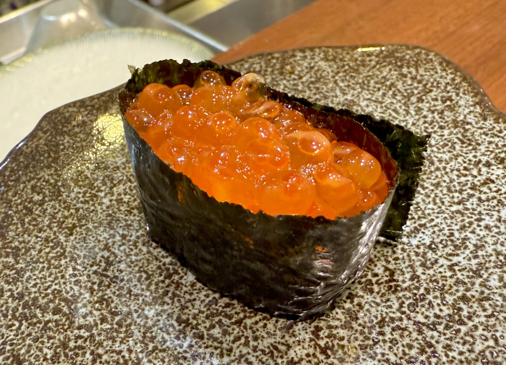 お次はウニ・クルマエビ・イクラのどれかを選べと酷なことをおっしゃいます。シーズンものでイクラかな?海苔が好きなので軍艦大好き。