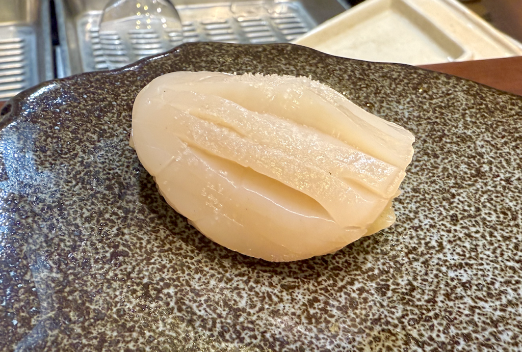 タイラガイ。とれとれきときとの貝が出ると、カウンター寿司に来たなあという気分になりますね。