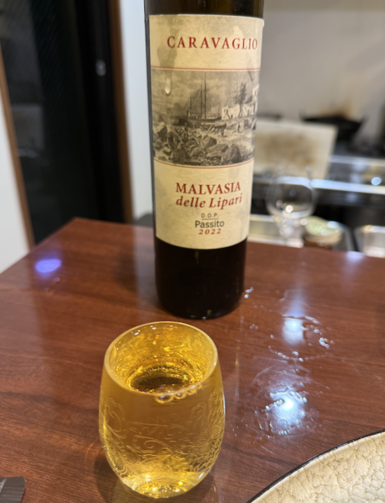 パッシートが出た!なんだこのお店、最高か!オレンジと蜂蜜が恋をしたような、ふくよかな甘味。うっとりと締まりました。