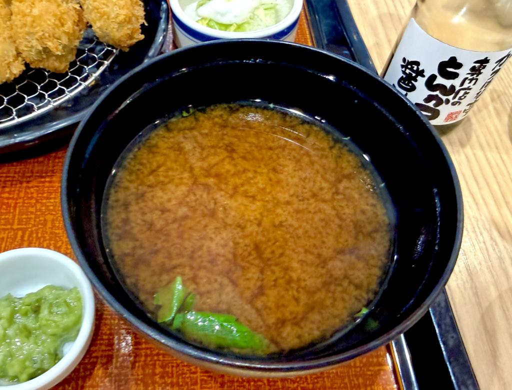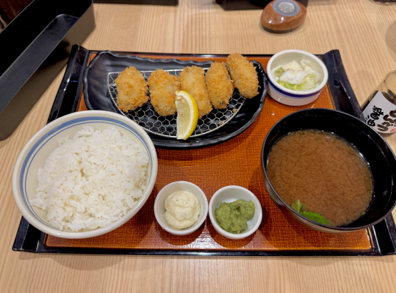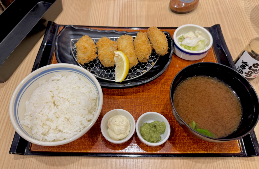 今日ばかりは純粋に牡蠣を楽しみたいので、予定通りかきフライ定食をタップ。ご飯は普通盛り、選べる味噌汁は赤だしで。