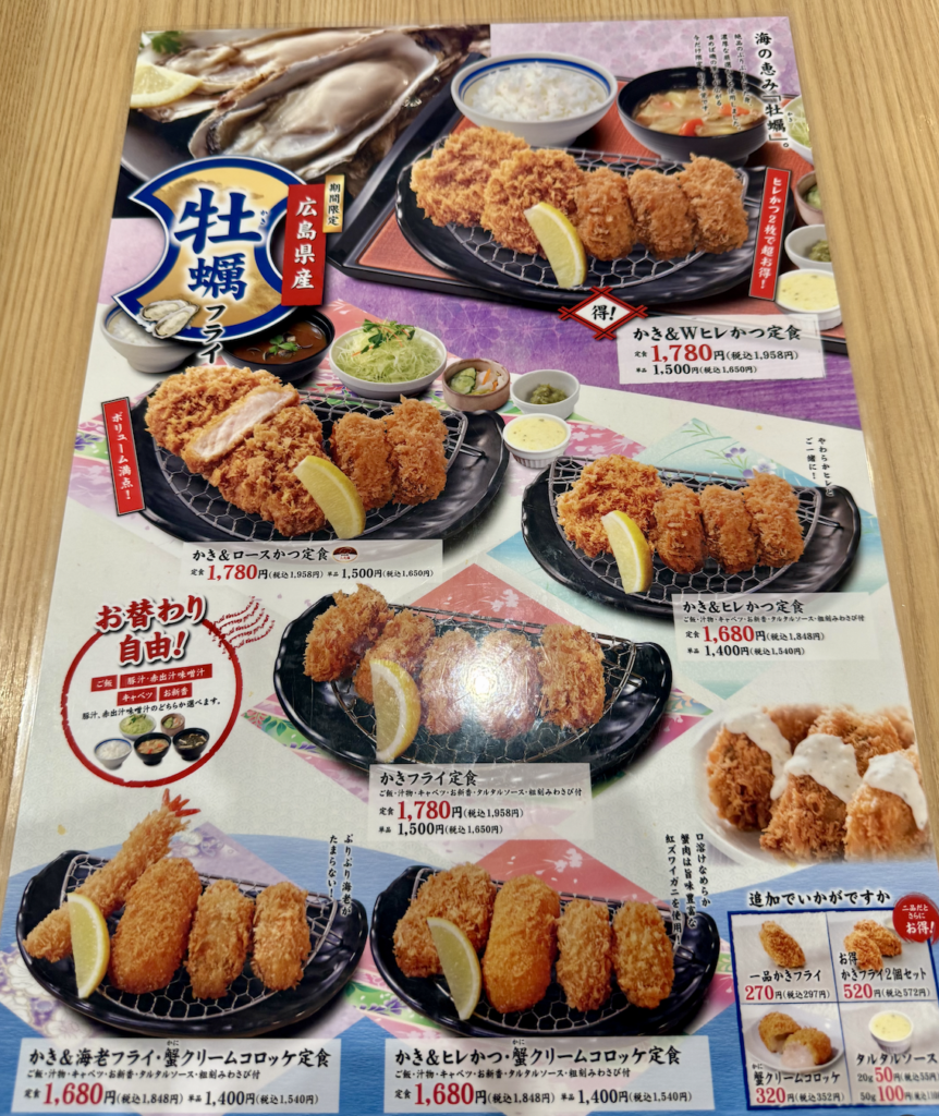 今回ばかりはヒレやロースも不純物、オイスター100%のかきフライ定食で即決だ!