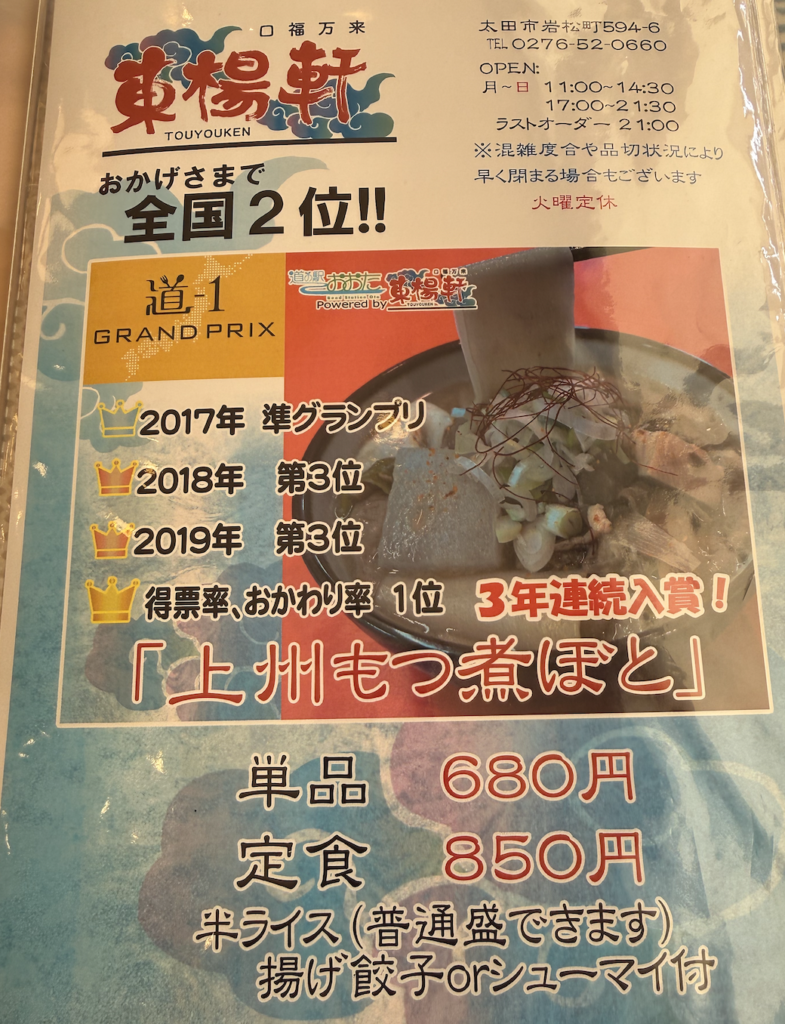 ほ〜ら、いきなり上州もつ煮ぼとなんてオリジナリティーとグンマイズムが強いメニューが来たよ。