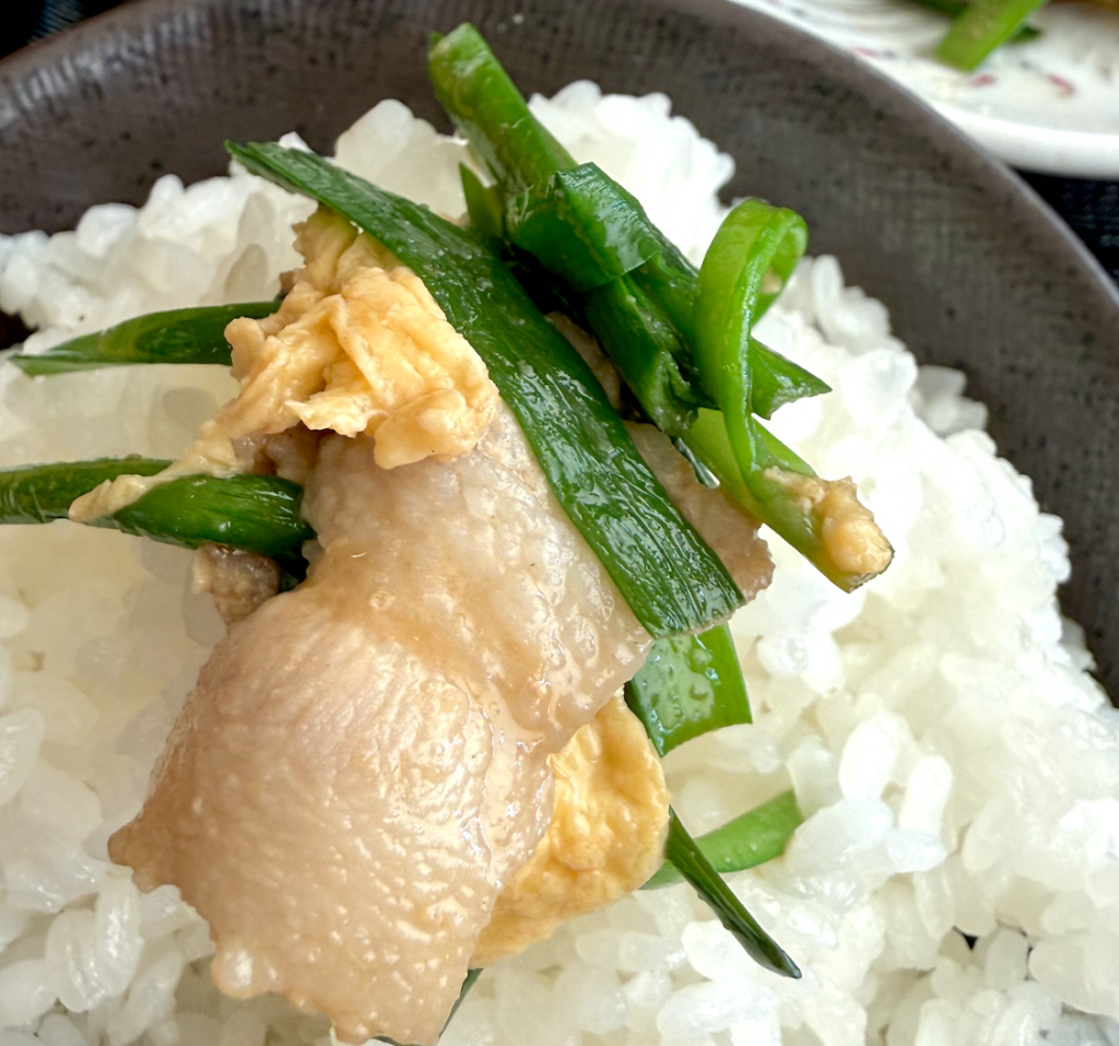 このタレは余さず食べねばウソというもの。残りご飯にザバーとかけてしまって、ニラ玉丼・ツユだくバージョンでフィニッシュだ!