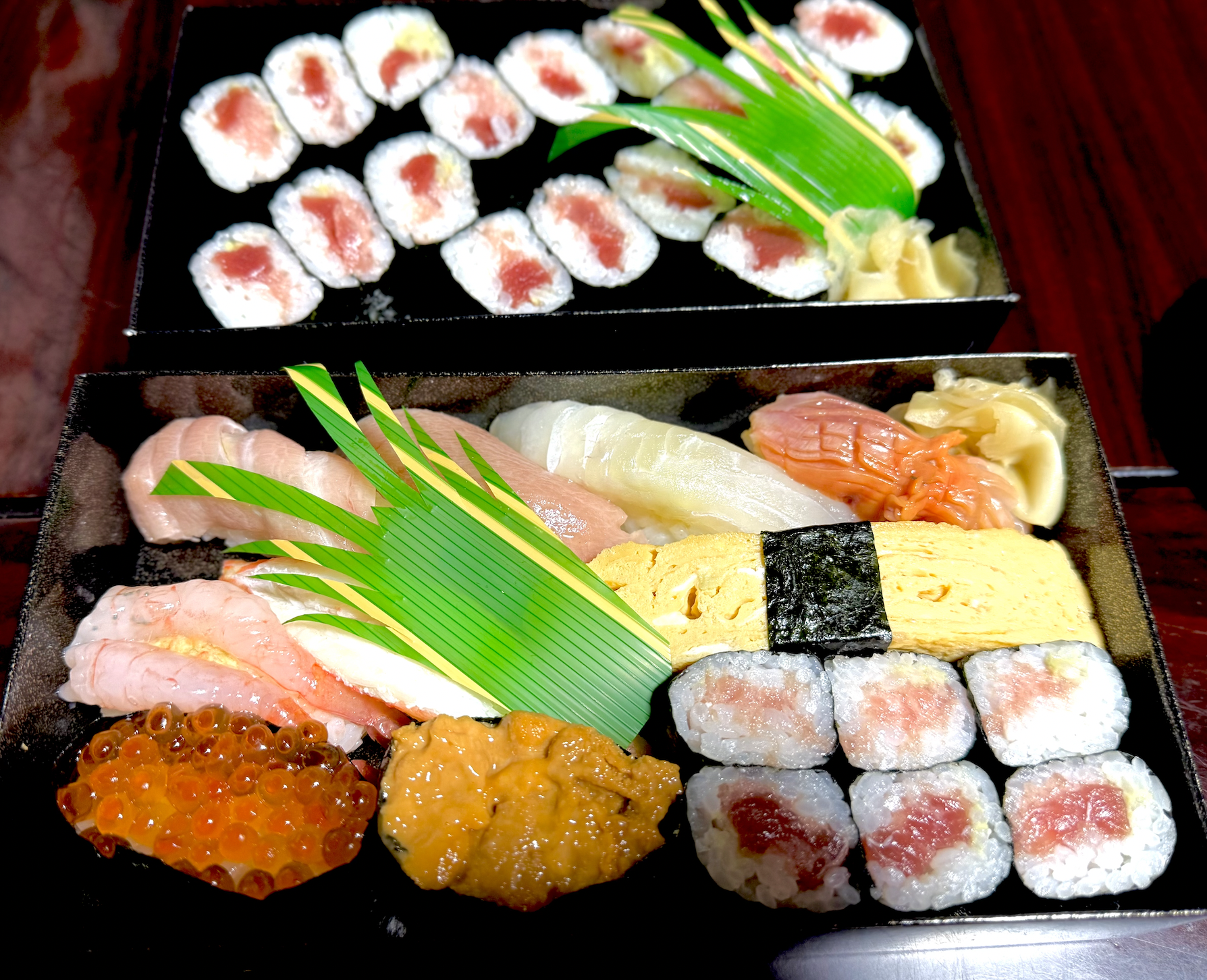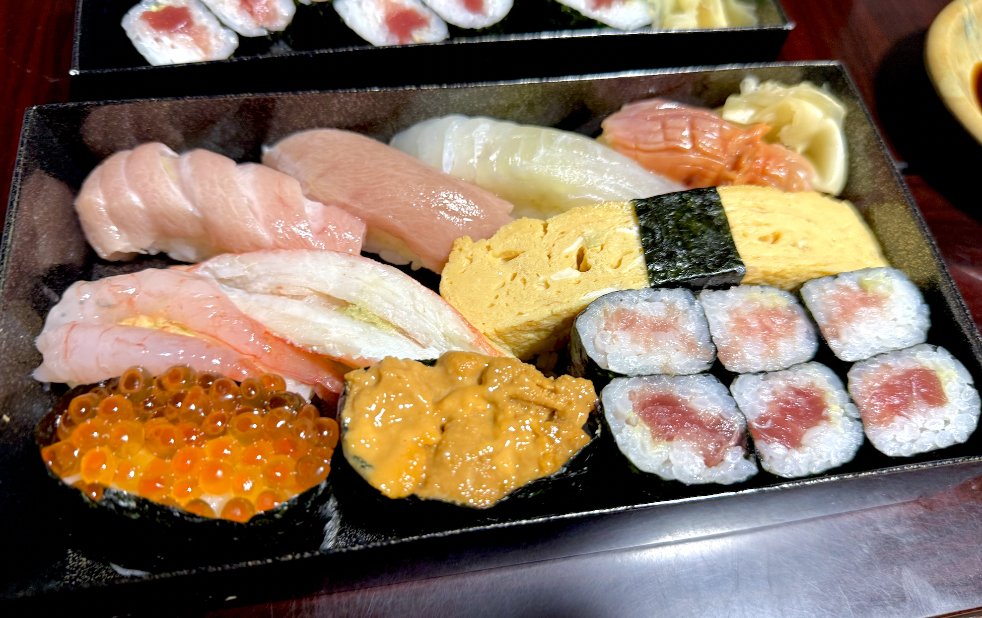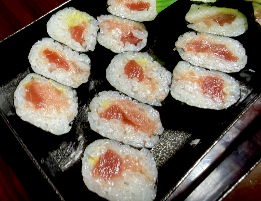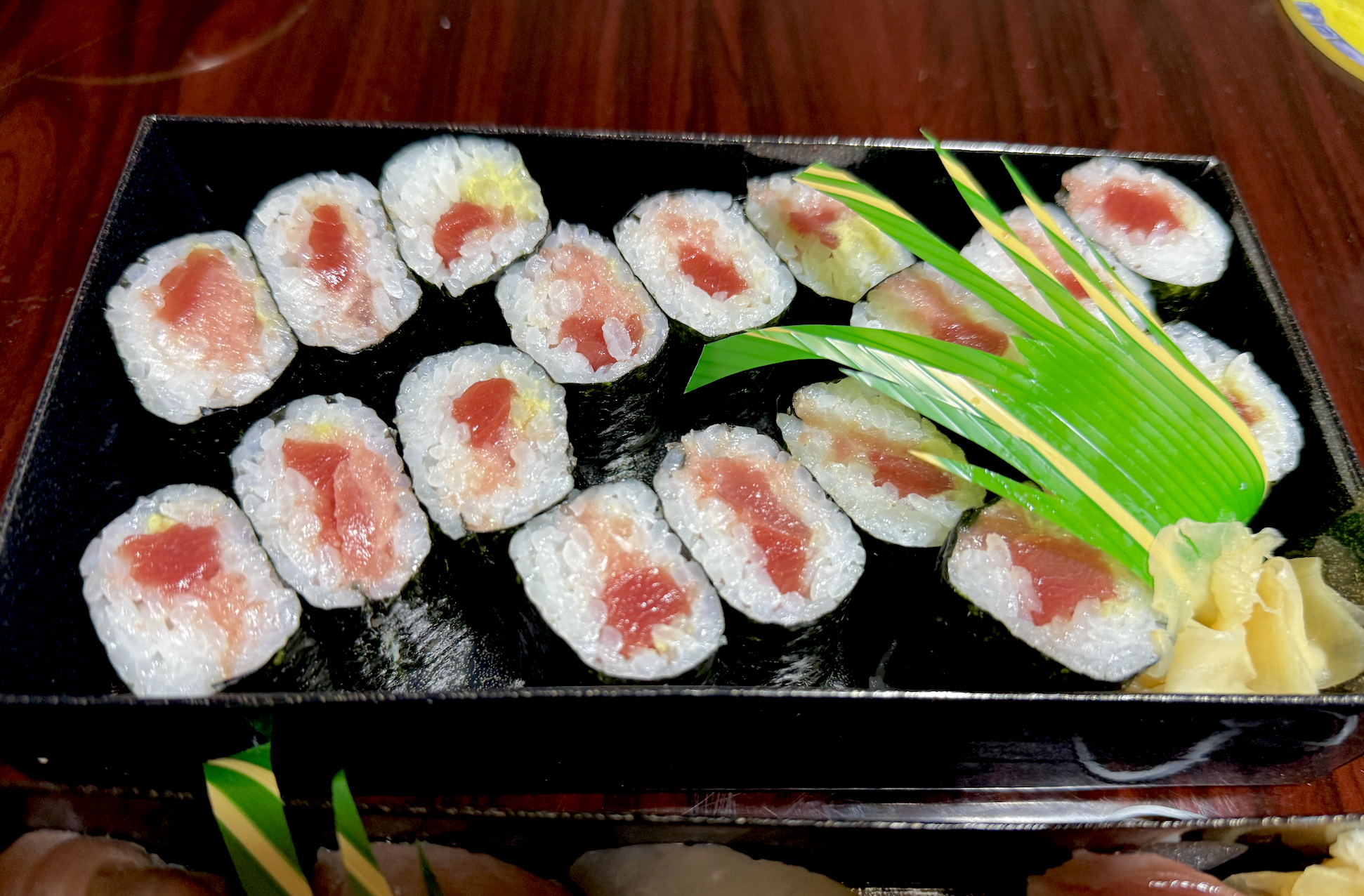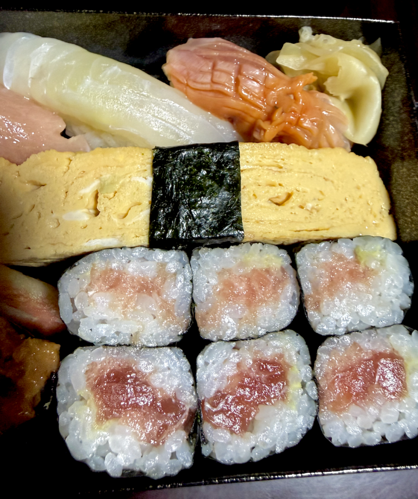 海苔巻き大好きマンなので鉄火巻きもつけてしまいました。1本で6個だからたっぷり3本分ということですね。