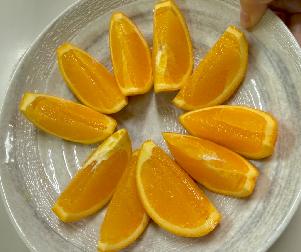 素晴らしい料理と白熱のスパーリング。すっかり道場の空気に酔いしれた後に甘く冷たいオレンジ。ふ〜、身も心もクールダウンだ。