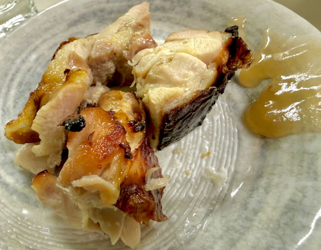 ああっ、なんという皮!想像の五倍パリパリ!そして北京ダックにはない肉部分!ぼくには詩人の筆がないので、ジューシーって言葉以外にこのうまさを写すことができない。