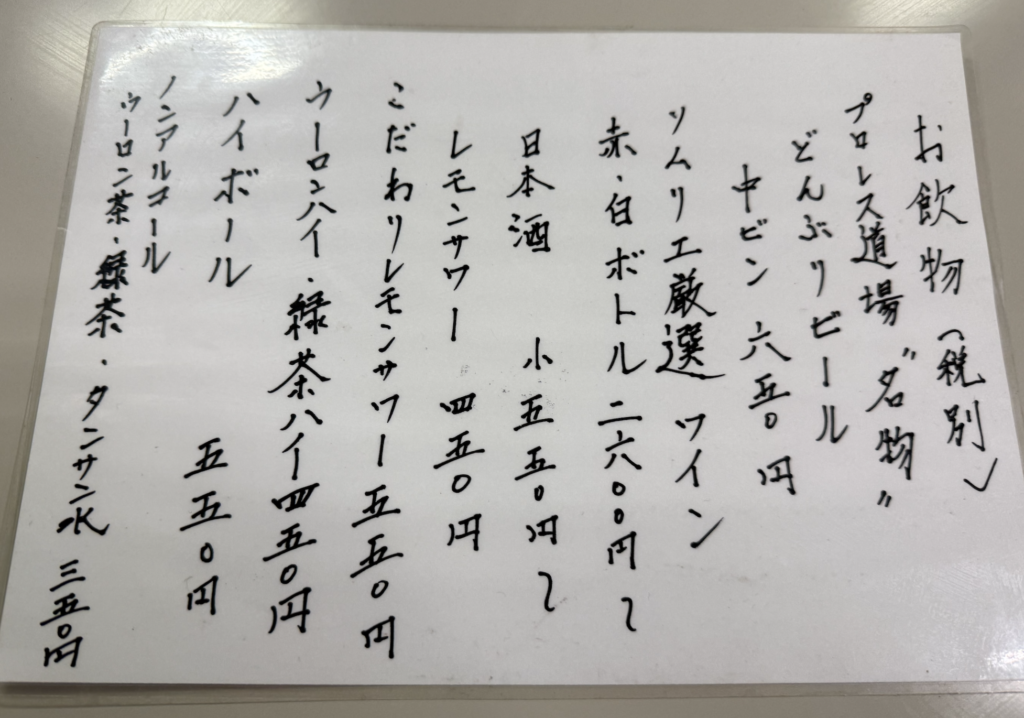 プロレス道場名物どんぶりビール、アントニオ猪木氏推薦のソムリエが選んだというワイン、アントニオ猪木氏が愛した強炭酸水等々、プロレス的エピソードに満ちたラインナップとなっております。