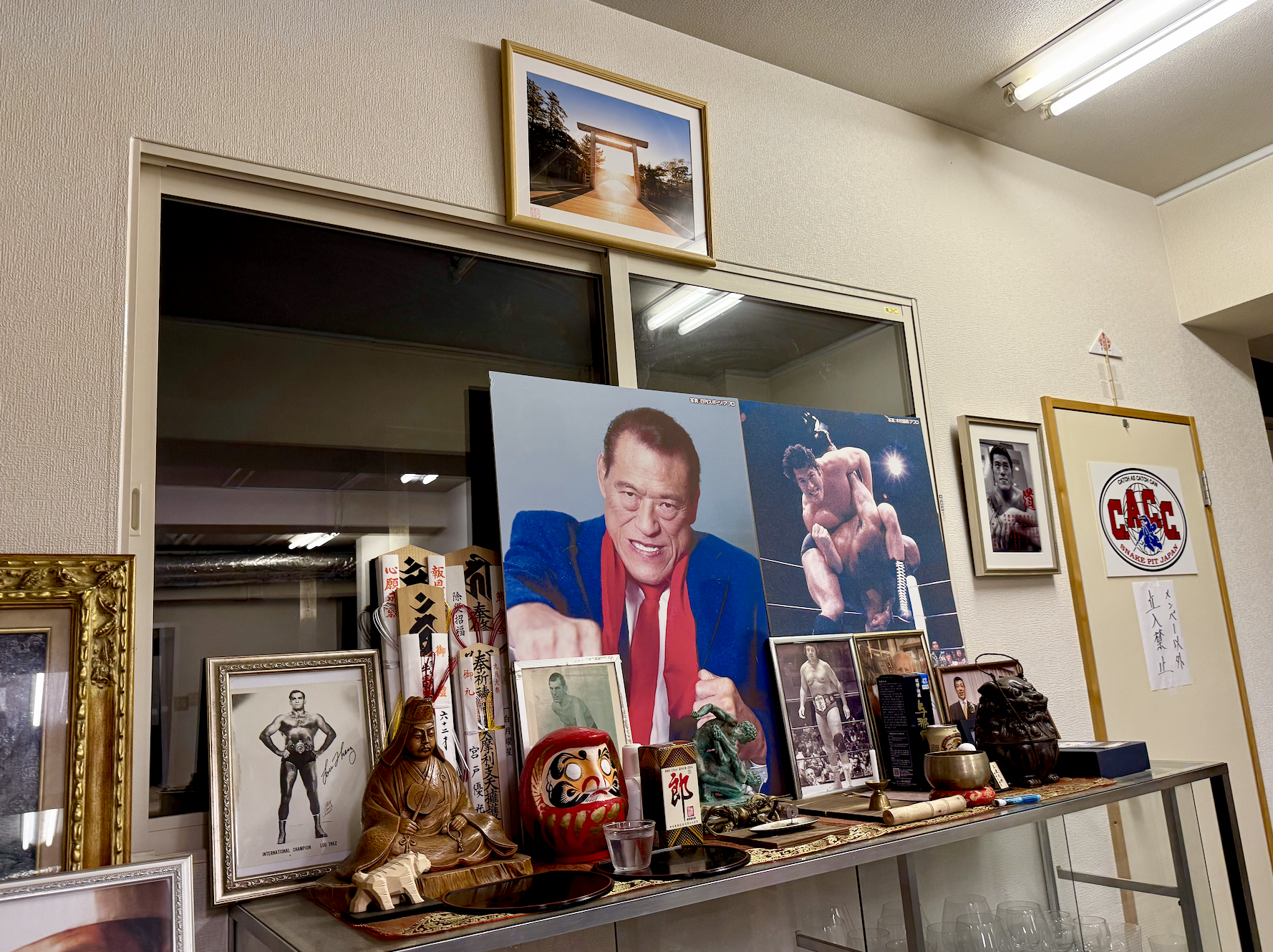 「U.W.F.」の文字がかすかに読めるドアを開ければ、思わずダーっ!と拳を突き上げたくなる闘魂空間!