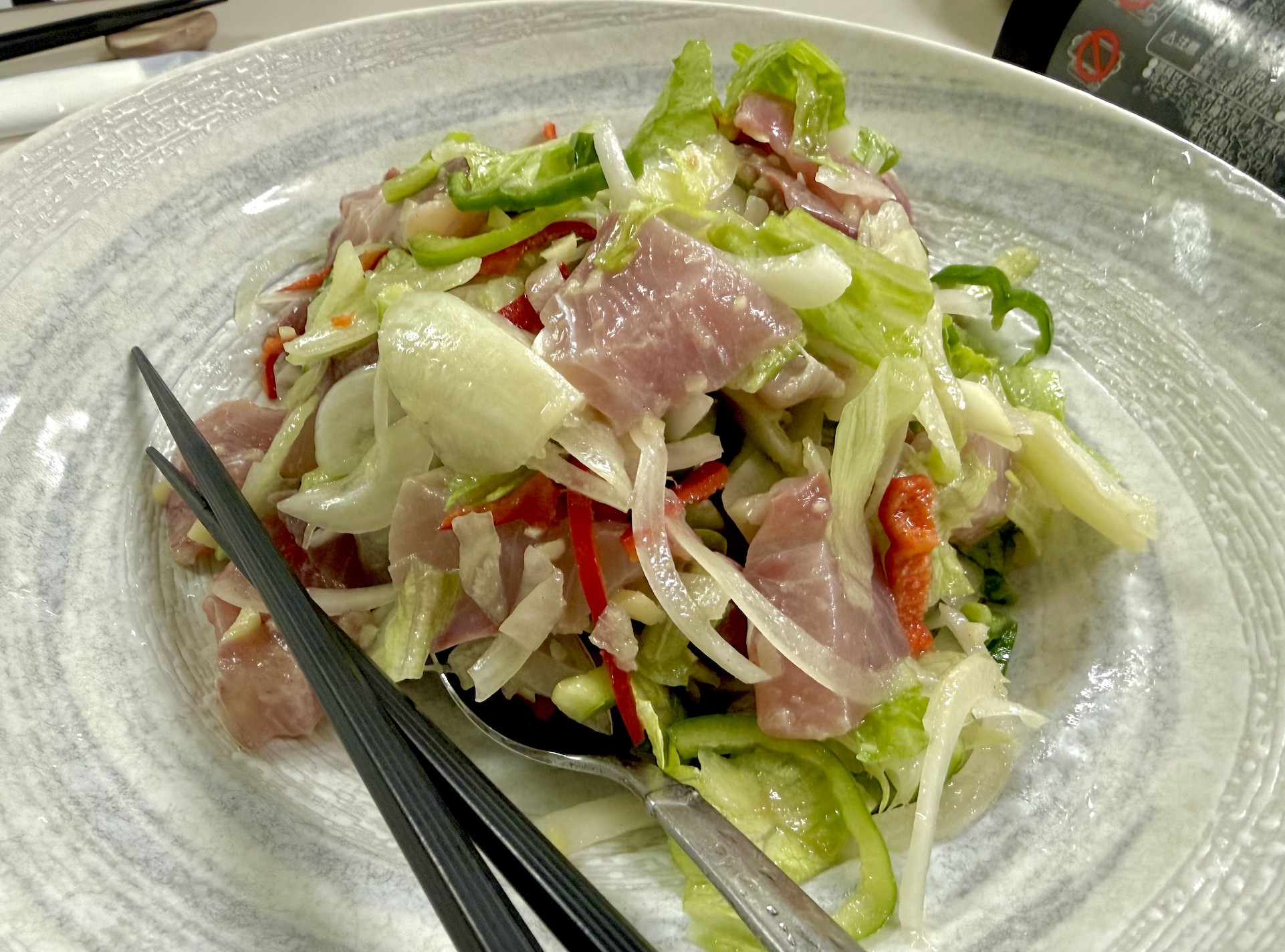 いつもはカツオが出てくるところが、季節の関係かブリの中華風サラダでスタート。