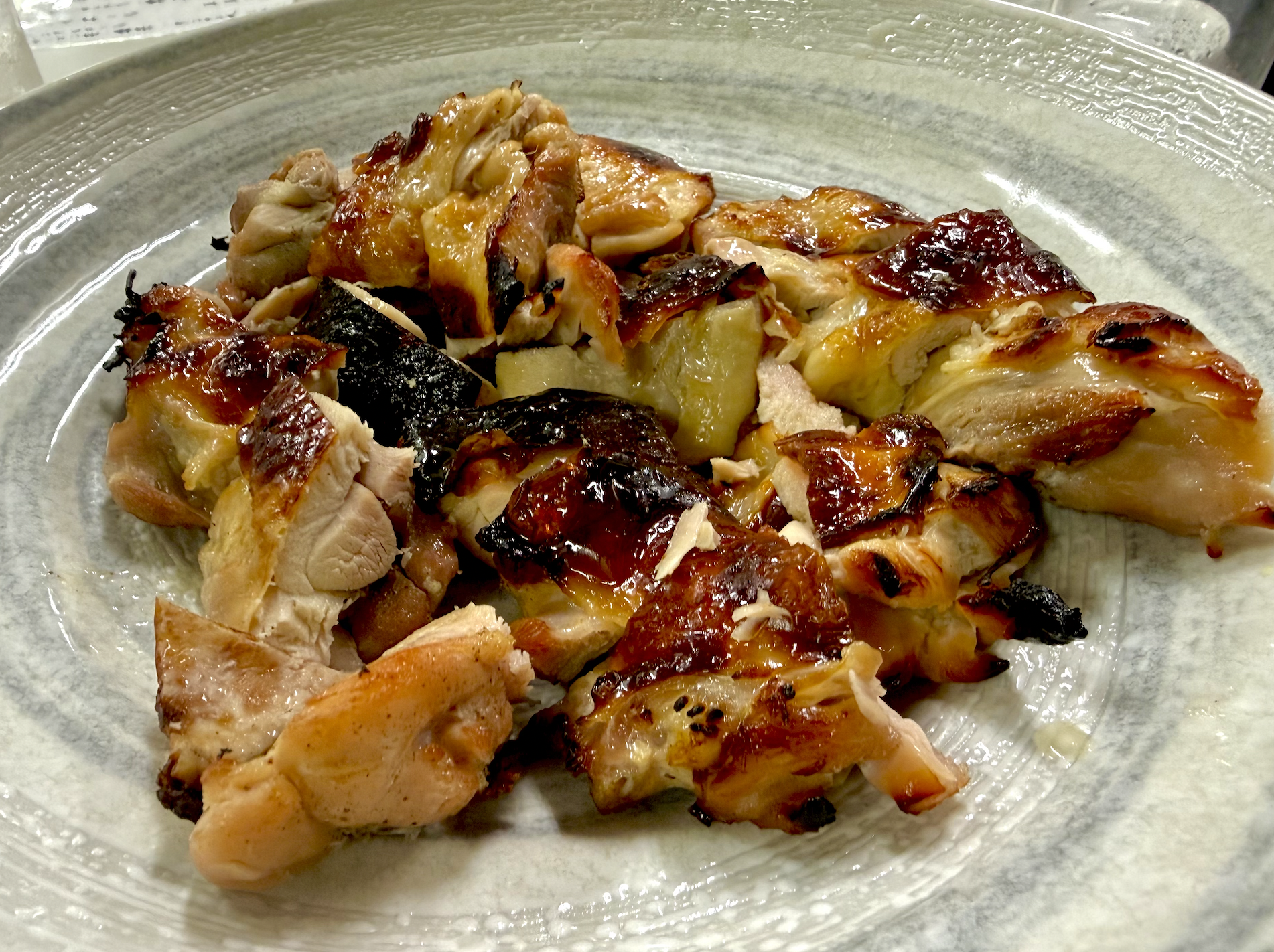 ああっ、なんという皮!想像の五倍パリパリ!そして北京ダックにはない肉部分!ぼくには詩人の筆がないので、ジューシーって言葉以外にこのうまさを写すことができない。