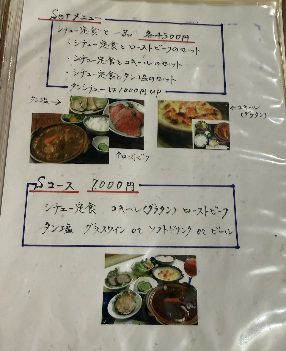 予約時にメニューも決めておいたので、お店ではシチューを選ぶのみ。二回連続で千円プラスのタンシチューにしているから、今回はミックスシチューがいいかな。
