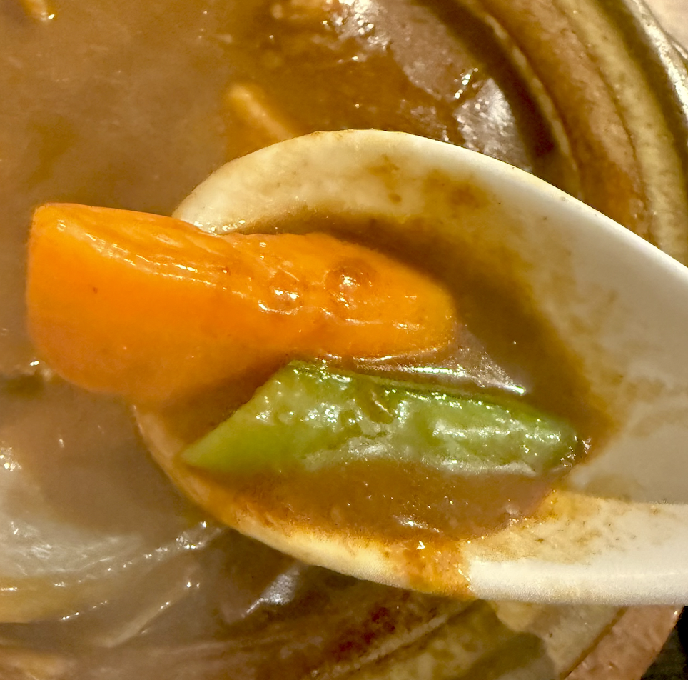 まろやか〜。間違いなくビーフシチューなんだけど、香草やスパイスはほとんど感じない。出汁で肉を煮込んだような、言うなればあっさり和風ビーフシチュー!