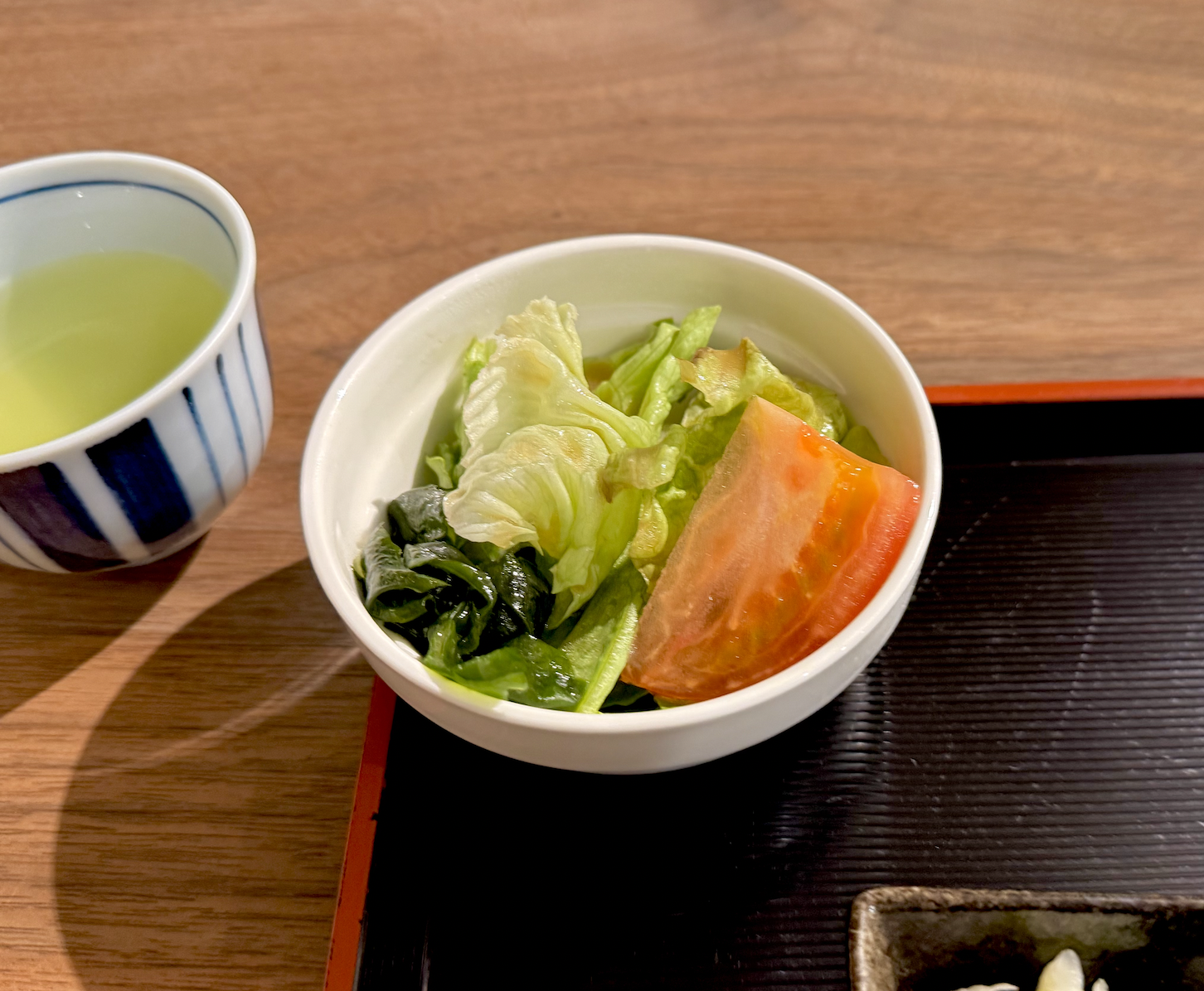 熱々にもほどがあるところに嬉しい、キリリと冷えたサラダ。特にワカメ、美味しい上に舌をクールダウンしてくれます。