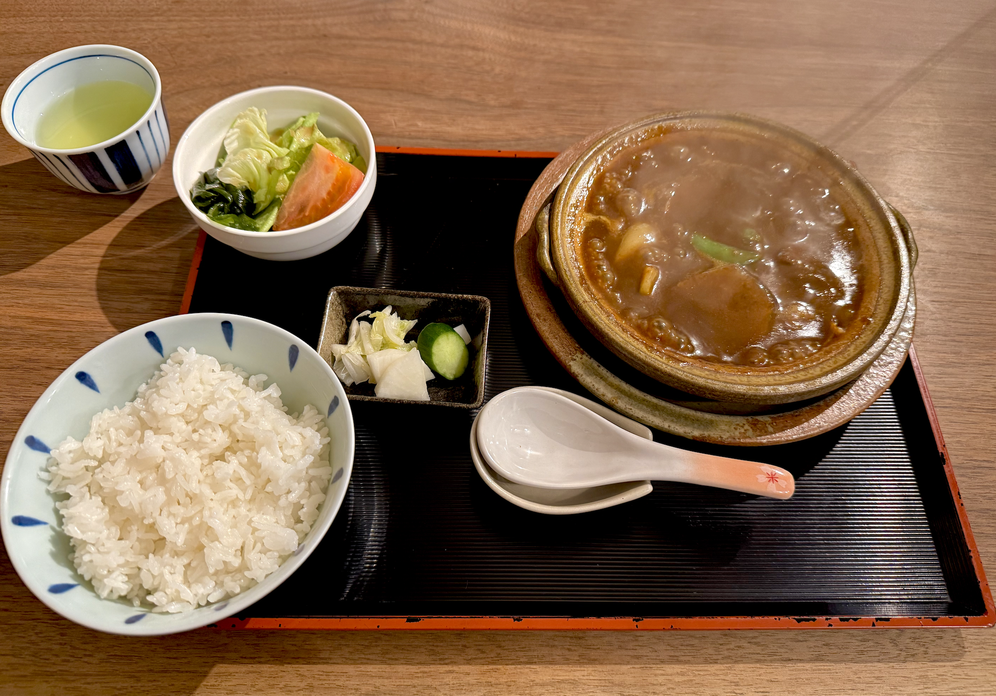 だから煎茶、だから香の物、そして白メシ!ビーフシチューなのに豚汁のごとくご飯を呼ぶのだ。