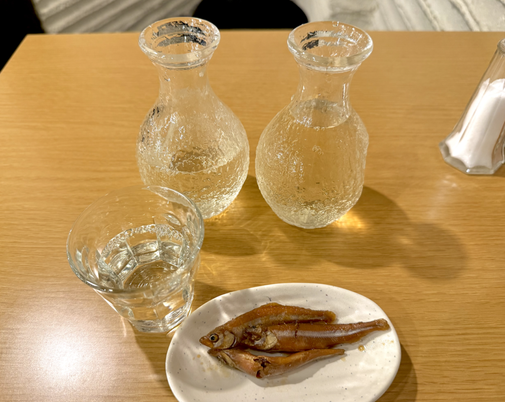 わ〜い、コンサートの成功おめでとうでした。お通しはワカサギですか、珍しいね。コレがなかなか美味しく、地雷ではないことがほぼ確定。