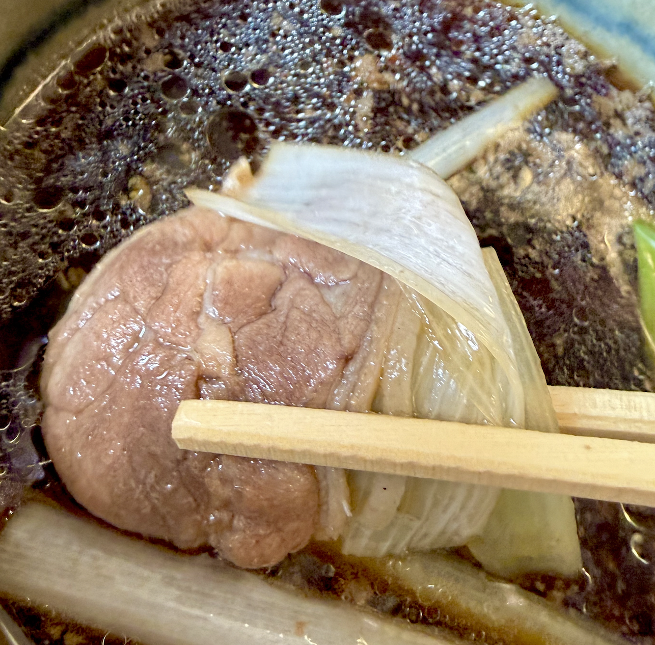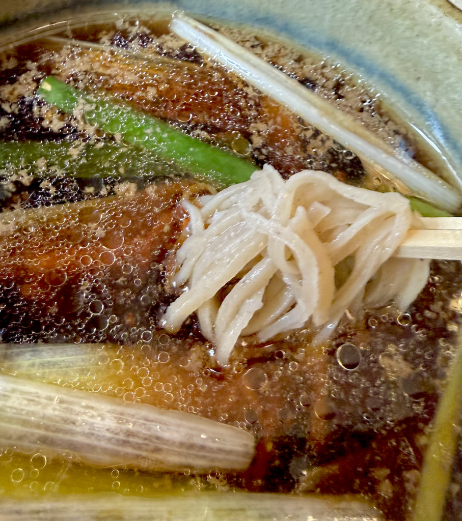さて、大量の鴨汁も攻めていかないと。表面に多量に浮かぶネギと鴨アブラ。ご馳走な雰囲気満点であります。