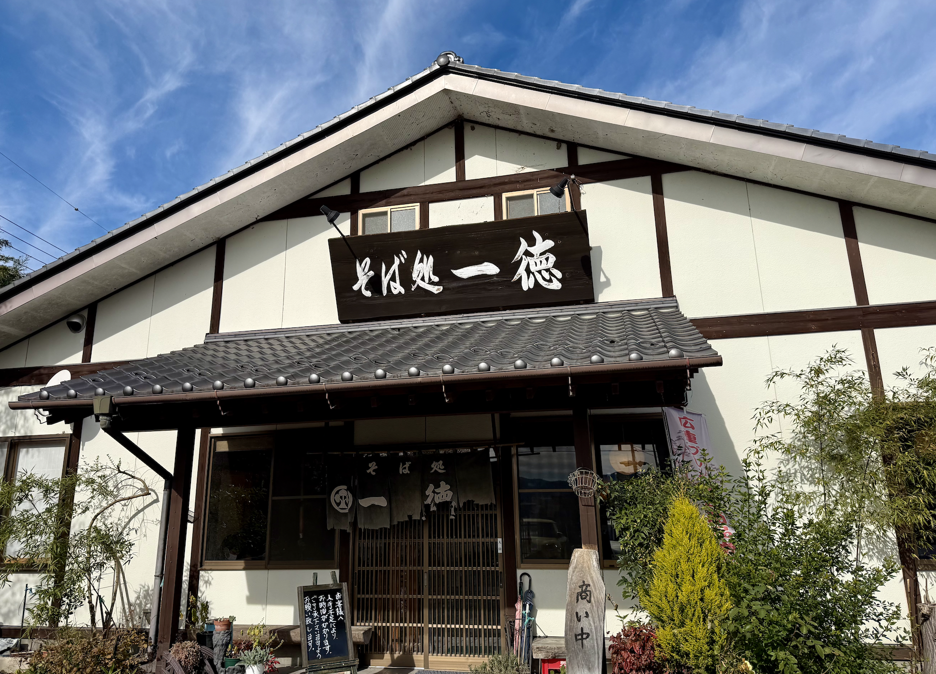 那珂川町まで来たらぜひ寄りたいのが「そば処 一徳」さん。ご当地馬頭産の粉で打ったそばをひとすすりしなければウソというものです。