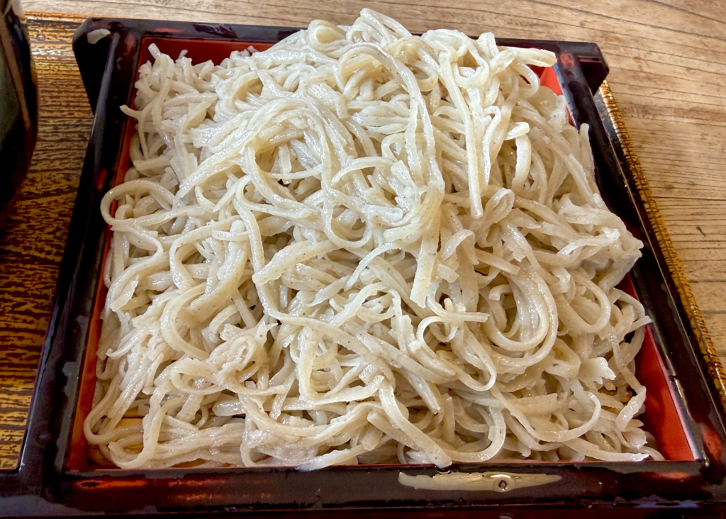 ワッサーッと盛られた大量のそば。デフォでも他店の大盛りくらいありますからね。そりゃ汁もどんぶりで出るワケだ。