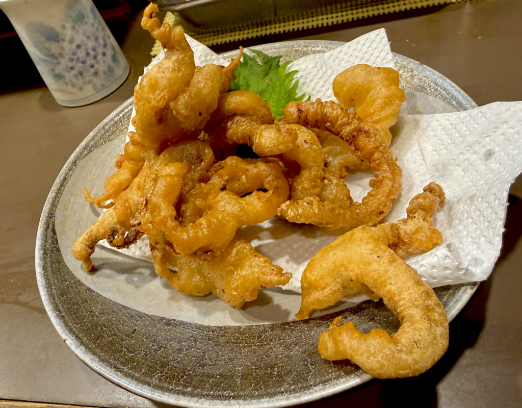 ここで先客の方が「ゲソの唐揚をちょっとだけ食べたいから、よければ一緒に食べてほしい」なんてありがたいことを言ってくださいます。ホントに?じゃあ御相伴に預かっちゃおうかな。