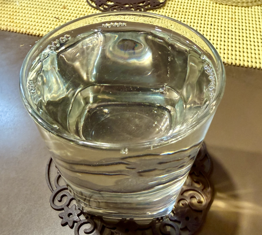 お隣の常連さんがグラス日本酒を飲んでいたので見せてもらうと、なんと焼酎ロックに使いそうなグラスになみなみと‥これで一合の計算はお得もお得ですね。一ノ蔵を願いま〜す。