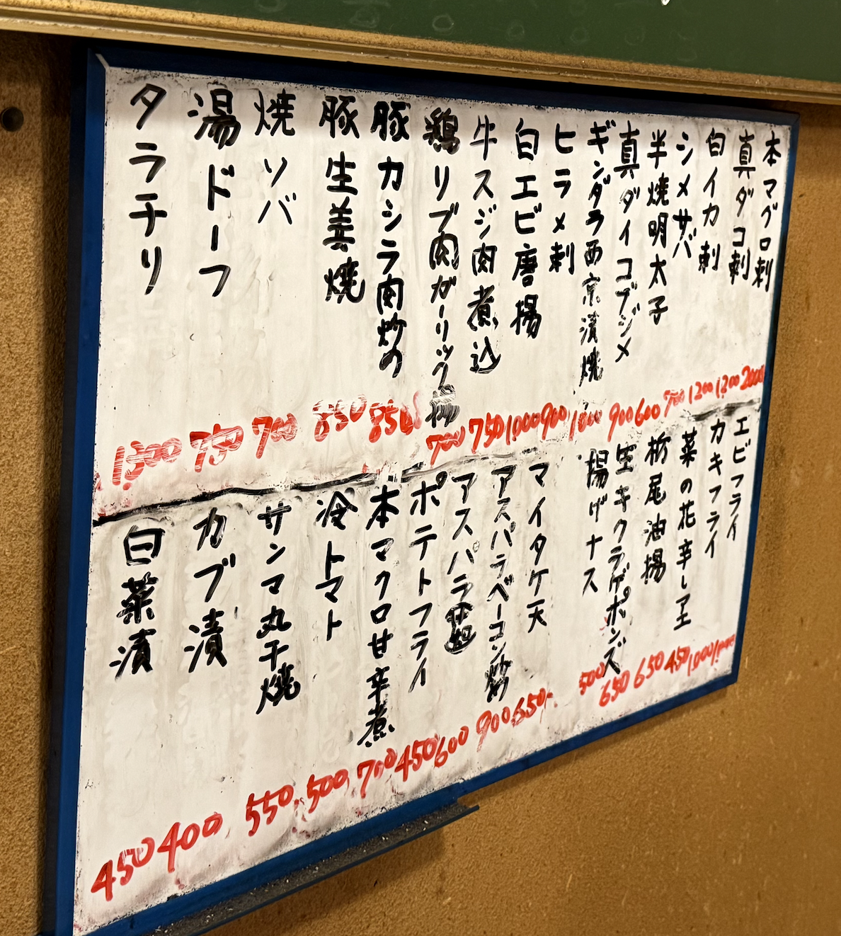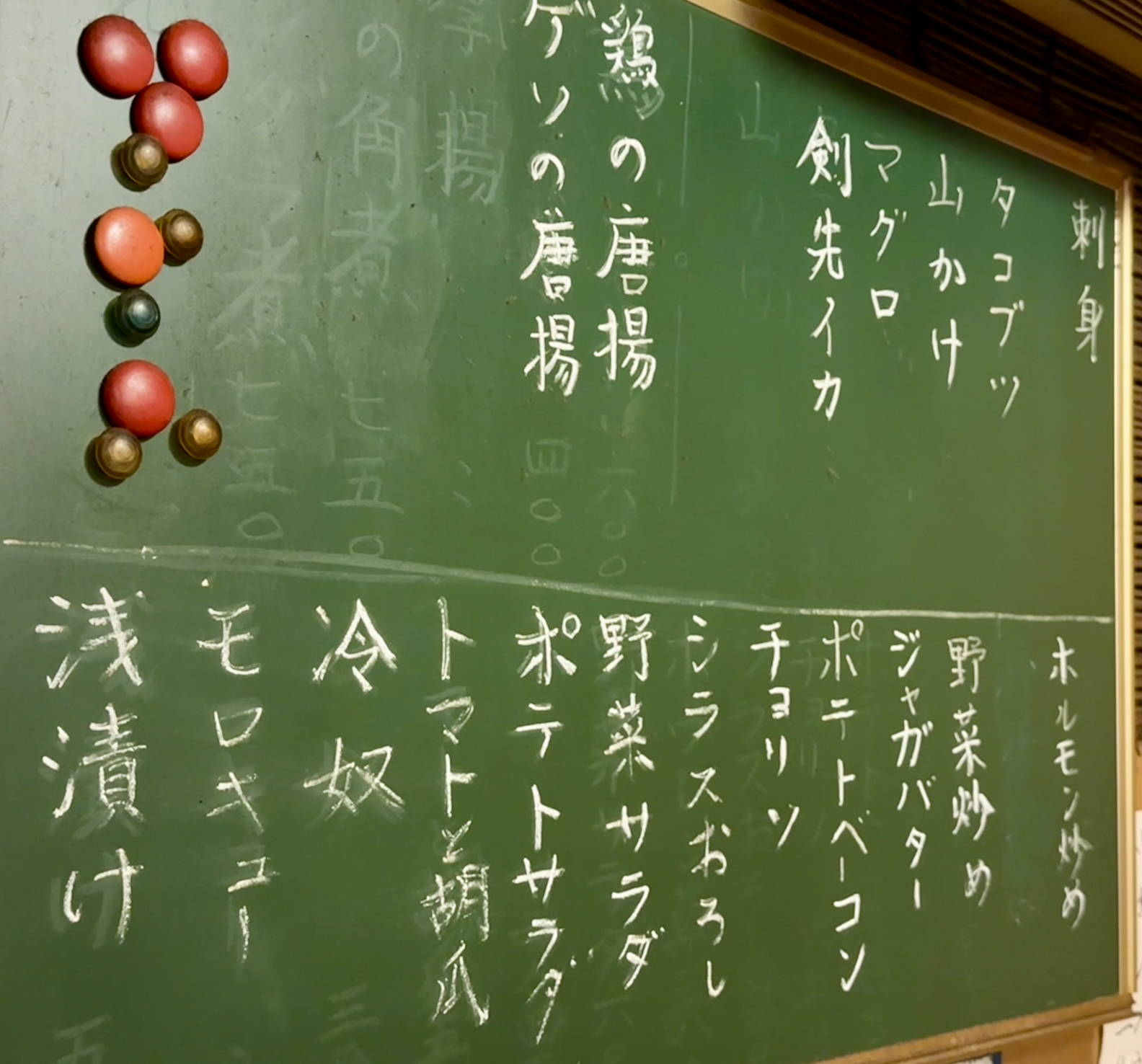 小上がり側からしか見えない所にメニューがあった。刺身の後を考えておくか。
